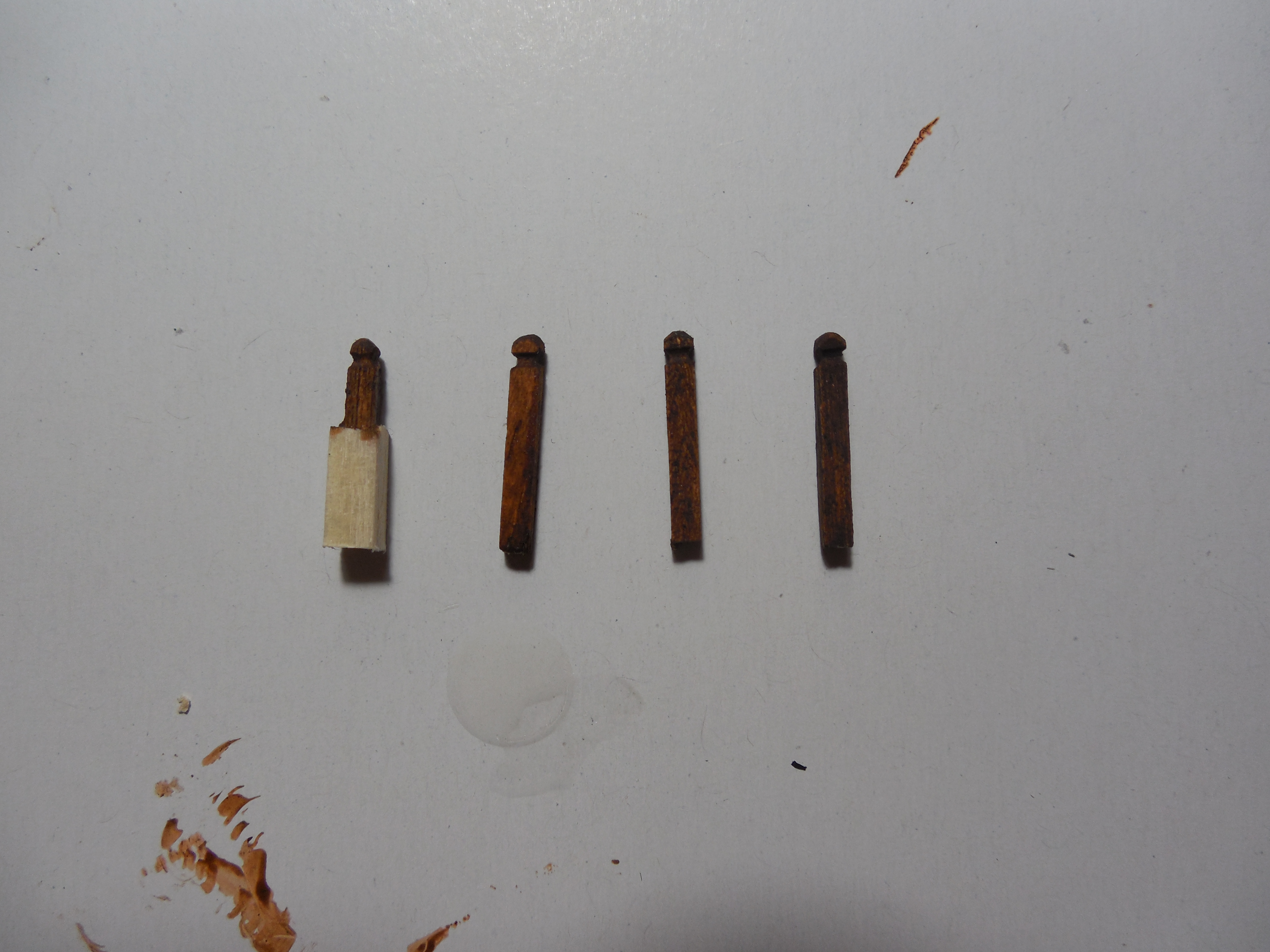 Проблема в том, что если разрезать, то верхние завитки декора разойдутся, а нижние наоборот - будут внахлест друг на друга. Придется подрезать, но тогда нижние и верхние будут разные. И одинаковыми их не сделать. А это будет выглядеть еще хуже, чем наклоненные столбики. А в кормовой звоннице вообще цельный элемент с декором балясин. Так что оставлю, как есть.AZET писал(а): ↑23 дек 2020, 12:26Почему же не вариант. Если у нас столбы будут стоять вертикально, декор можно разрезать и вставить между балясинами в порезанные на глубину 0,5мм(примерно) вертикальные пазы. Только не в нахлёст, как по журналу, а по центру, думаю внешний вид только выиграет. И да, не сойдутся пазы на планшире, но всё равно их лучше заменить на рейки.