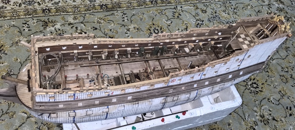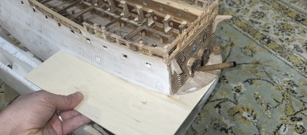 Продолжаю заниматься корпусом корабля, перебрался на борта. Шлифую, наношу шпатлёвку. Опять шлифую.