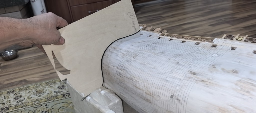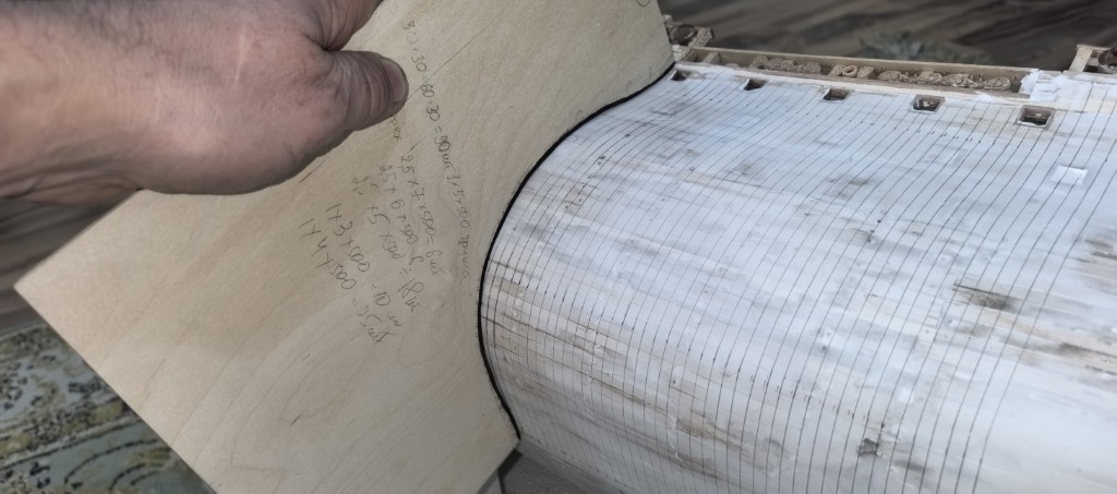 Достичь симметрии корпуса модели корабля — задача, требующая точности и внимательность. Прежде чем приступить к работе, внимательно изучил чертежи, которых нет!!! а вот шаблоны с моего проекта я сделал. Только так я убедился что обе стороны корпуса зеркально отражают друг друга.