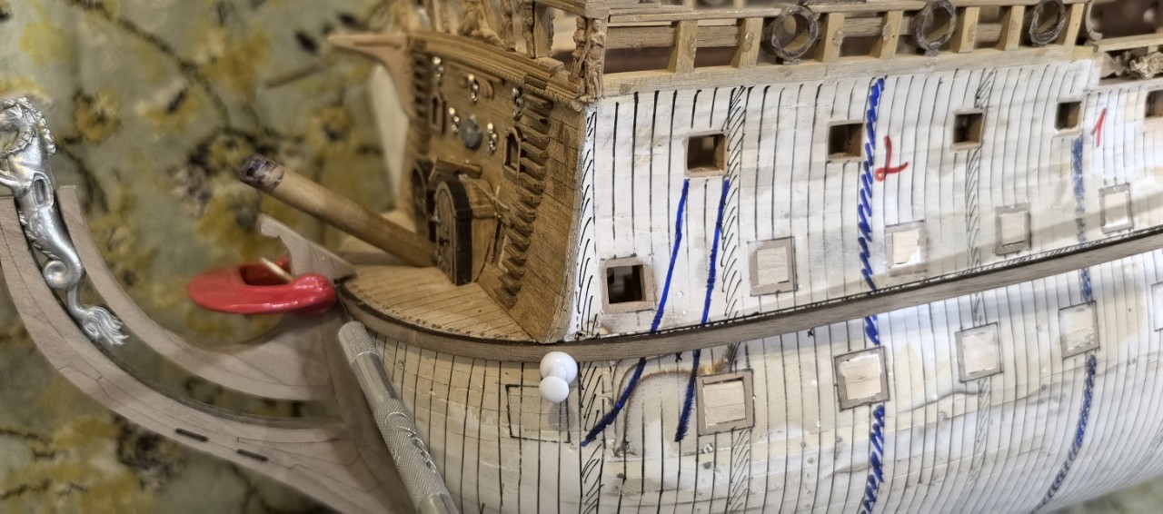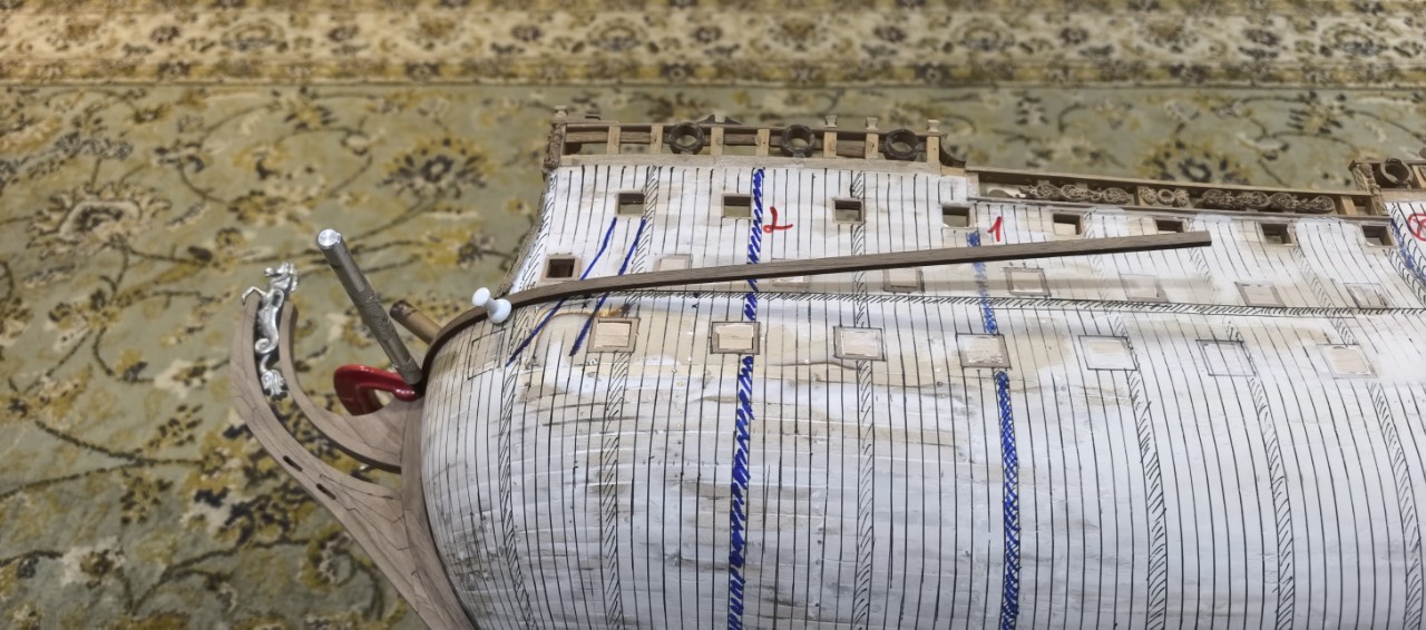 нарисовал схему как бы шпангоутов корпуса , чтобы потом правильно распологать нагели и болты. И наметил расположения чанель-вельс-бархоута. С него я и начну чистовую обшивку.