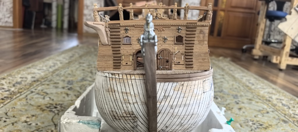 Некоторые области, такие как корма досок обшивки, вогнутых части корпуса требуют деликатного подхода. Шлифовка вогнутых частей корпуса модели корабля является одной из наиболее трудоемких задач, так как требует особого внимания и точности. Неправильная техника может привести к повреждению формы и нарушению симметрии. Лучше воспользоваться ручной обработкой или специальной мини-насадкой и шлифовать “от себя” и “к себе” следуя кривизне корпуса, а не против него. Периодически останавливаюсь, чтобы посмотреть результат при хорошем освещении.