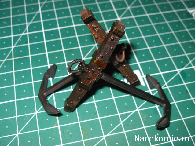 Ну что ж, пока жду разметку портов, решил заняться мелочевкой. Покажу, как я сделал якорь. Шток, предложенный ДеА мне категорически не понравился. У меня есть пара ореховых реек, и вот их я решил приспособить под шток. И так отпиливаем заготовки по длине и протачиваем выемки под веретено