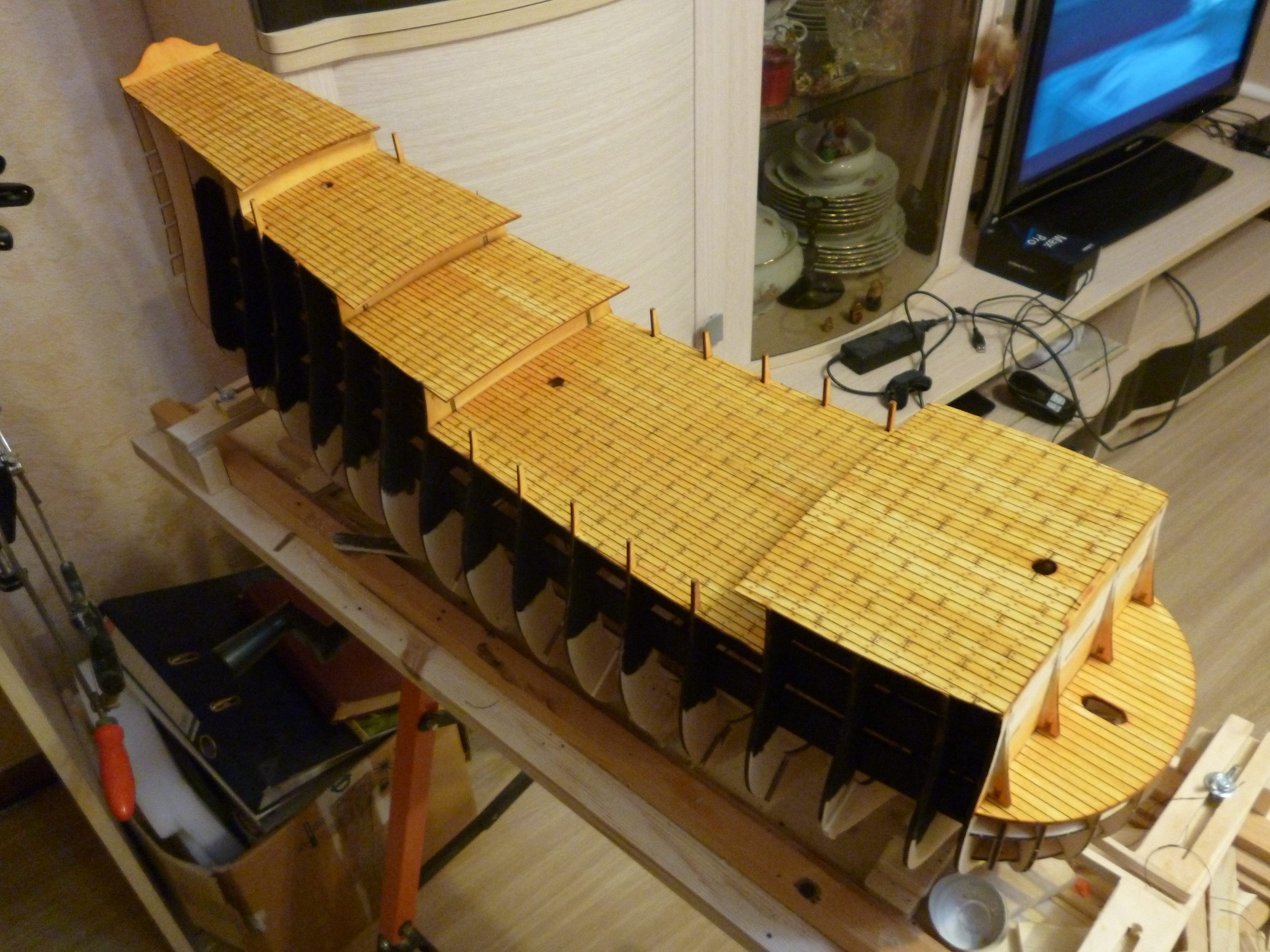 Все таки продолжу журнал здесь, на форуме. Продолжаю установку палуб. Подробно описывать не буду. Процесс аналогичен предыдущим палубам. Подготовил бимсы, установил палубу