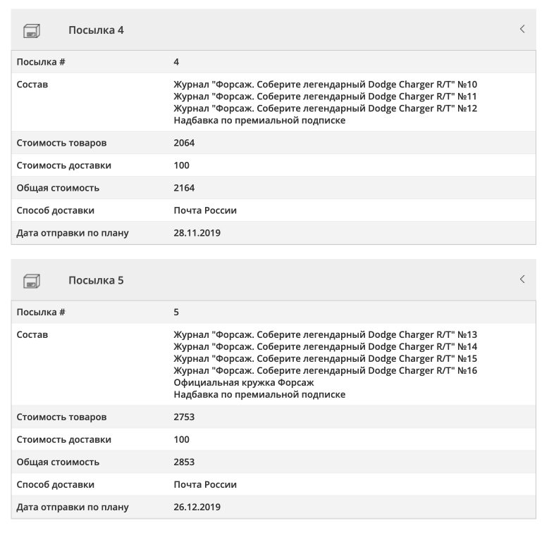 Судя по опыту подписок на R2-D2 и Волгу — кружек к тому времени может и не быть. Но спасибо хотя бы за то, что отправка обычно раньше указанных дат происходит.Юрий Тарасов писал(а): ↑30 окт 2019, 08:43В личном кабинете появилась 5-я посылка с датой на 27 декабря и там уже 4 номера и кружка должна быть. Надеюсь к этому времени кружки будут, а не как с папкой![]()