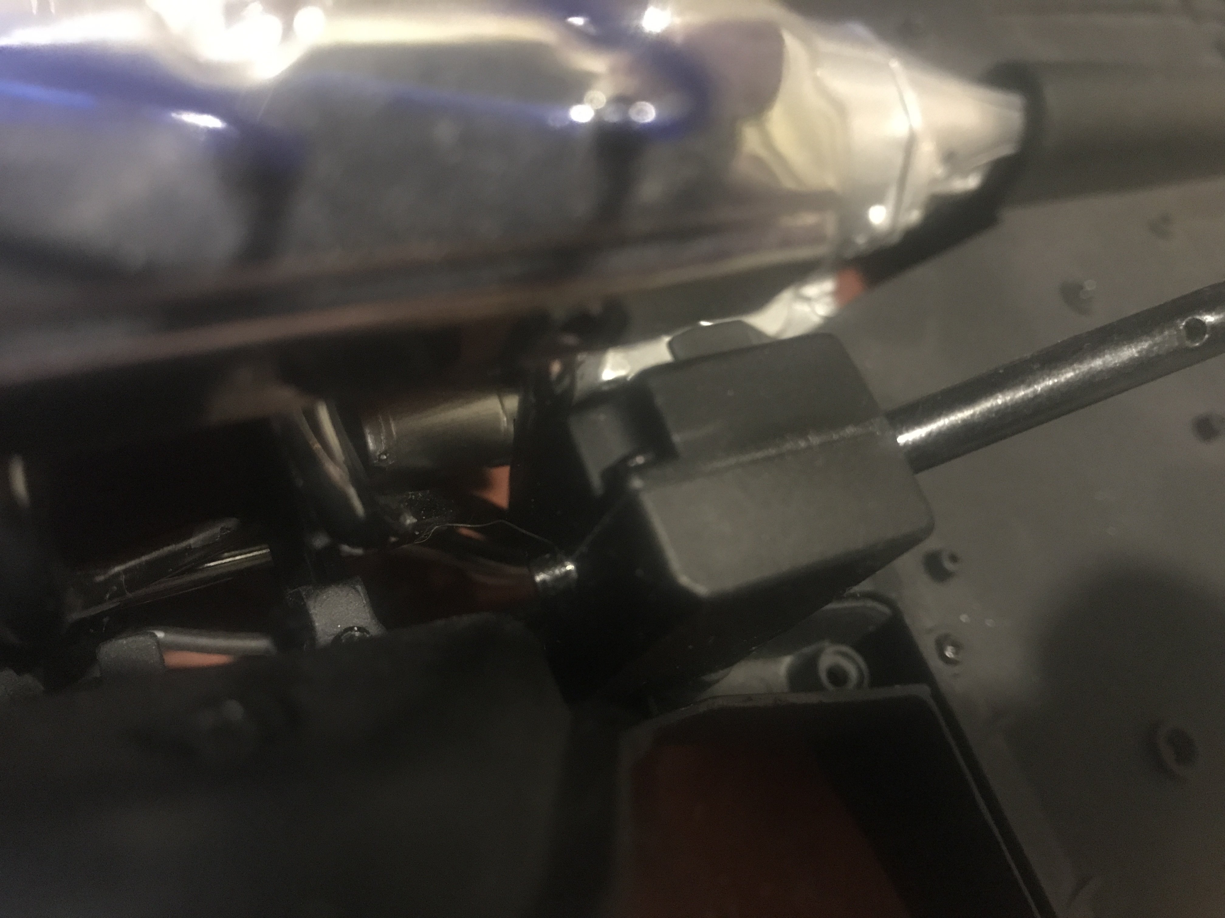 Винт который соединяет две половинки вала с рулём. Доступ к этому винту очень затруднён. И если он сломается разбирать много. Крайне неудачное по-моему решение по соединению двух половинок вала. Вал диаметром 6 мм соединяется винтом диаметром не более 1.7 мм с резьбой. Контроль этого соединения тоже затруднён (так как собирается вслепую).