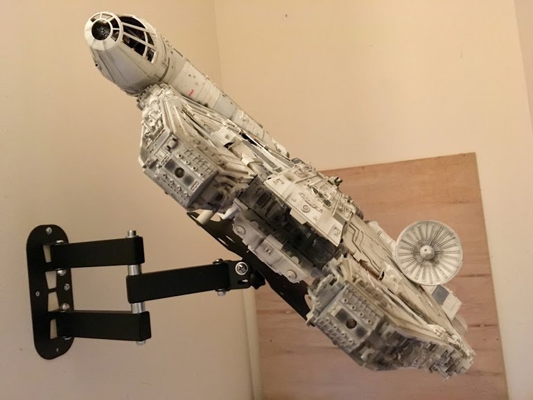 Заманчивая идея собрать космический корабль (мечта детства!), вот только габариты смущают. На видео выше мужчина 8 минут вокруг да около вещает, а самое интересное не показано - как же модель смотрится, будучи установлена на кронштейне на стене.
