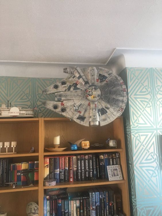 Заманчивая идея собрать космический корабль (мечта детства!), вот только габариты смущают. На видео выше мужчина 8 минут вокруг да около вещает, а самое интересное не показано - как же модель смотрится, будучи установлена на кронштейне на стене.