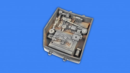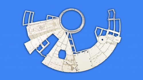 2. При сборке выяснилось, что в детали BF-35 (деталь каркаса) отсутствовали 2 отверстия для крепления обшивки и для навесной детали . Срезал с детали обшивки ножку для крепления, а для навесной детали BP-31 просверлил и надфилем по диаметру доработал.