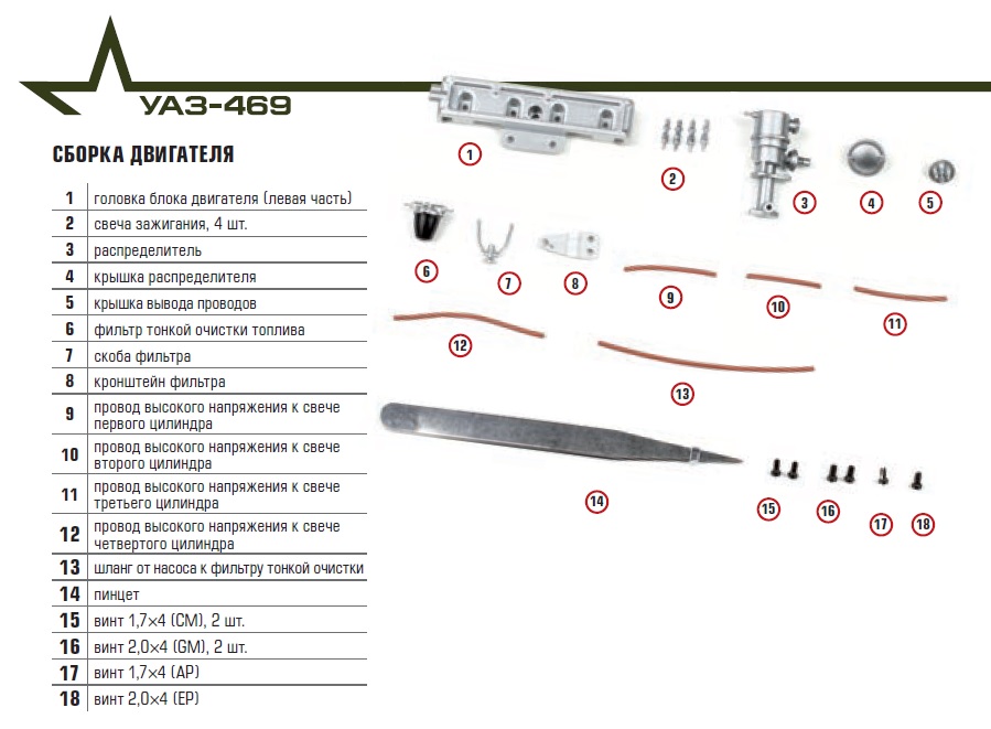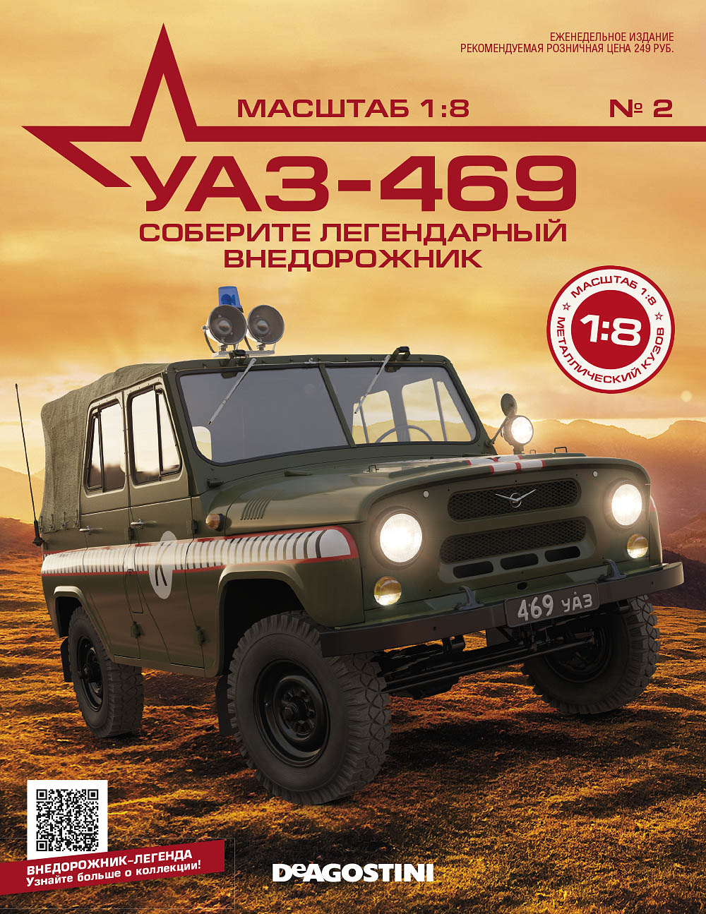 Комплектацию выпусков, фото деталей и электронные инструкции смотрите на сайте - https://uaz469.deagostini.by/grafik