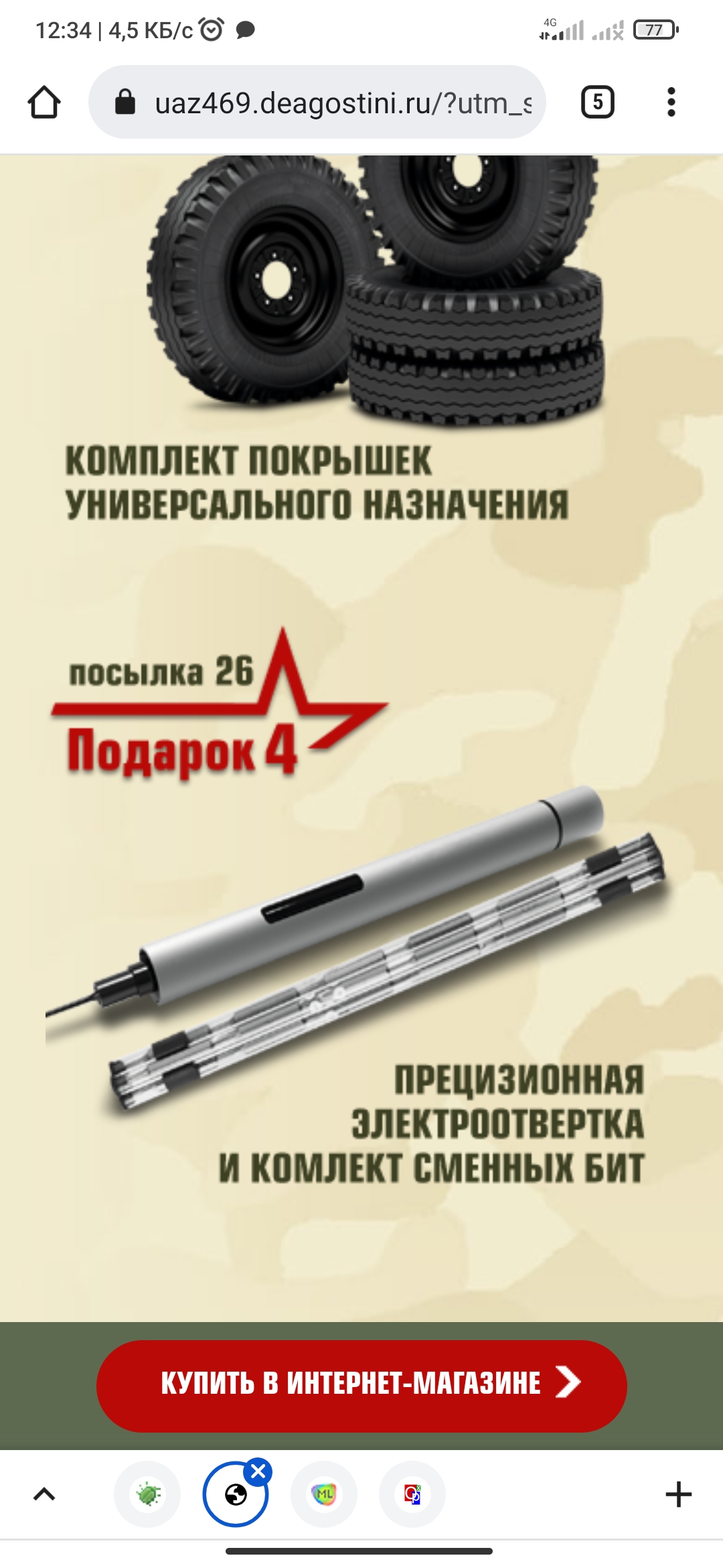 На сайте вновь открылась подписка, предлагают подписаться с 81 выпускаГеоргий Георгиевич Кожанов-Янг писал(а): ↑31 май 2022, 10:31 У меня собран УАЗ до 80 номера, включительно. Хочу оформит подписку с 81, но на сайте «подписка закрыта», что делать? Откроется ли подписка?
