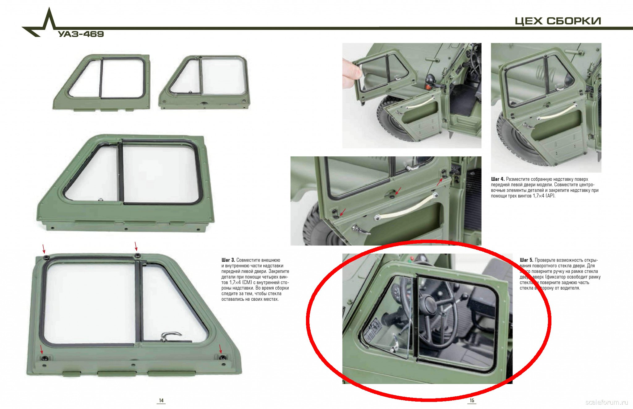 Вот это фото к шагу 4 (перечеркнул красным) размещено ошибочно, т.к. речь идет о сборке передней правой двери, а на фото передняя левая... Данное фото уже было в журнале в инструкции к №102: Второе.