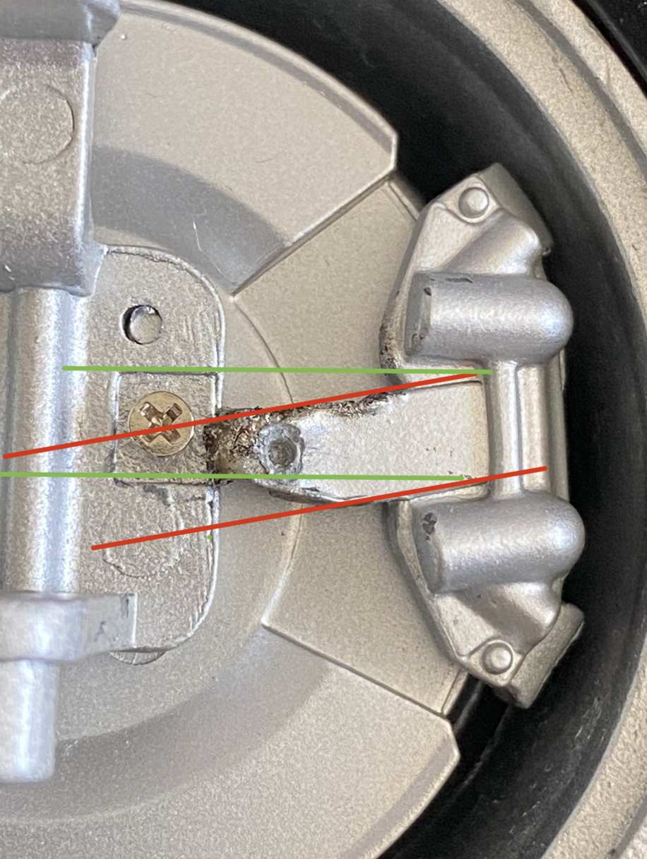 Всем доброго времени суток! Собираю свою первую модель мустанг и столкнулся с такой ситуацией. Суппорт оказалось невозможно смонтировать на диск согласно инструкции, так как отверстие крепежа к диску на направляющей суппорта не стыкуется с ответным отверстием на тормозном диске. В итоге элемент пытался нагреть и чуть отогнуть до прямого угла, но испортил деталь. Прилагаю фото.