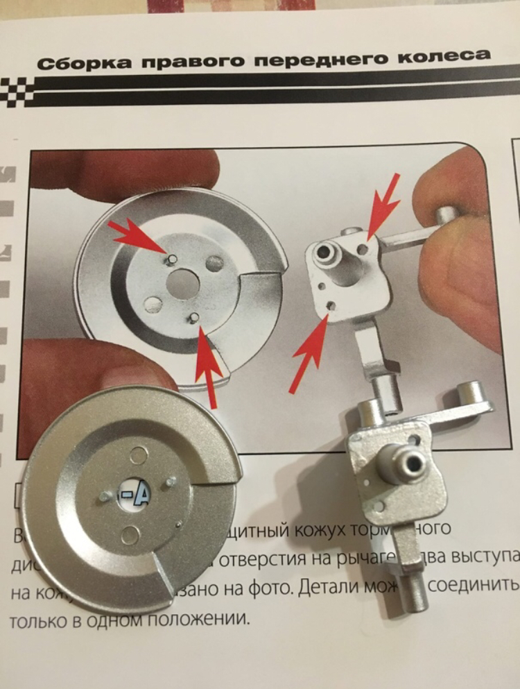В третьем выпуске получил очередной комплект деталей для сборки, но не всё я смог собрать, т.к. на защитном кожухе тормозного диска, выступы не совпадают с отверстиями, которые расположены на поворотном рычаге.