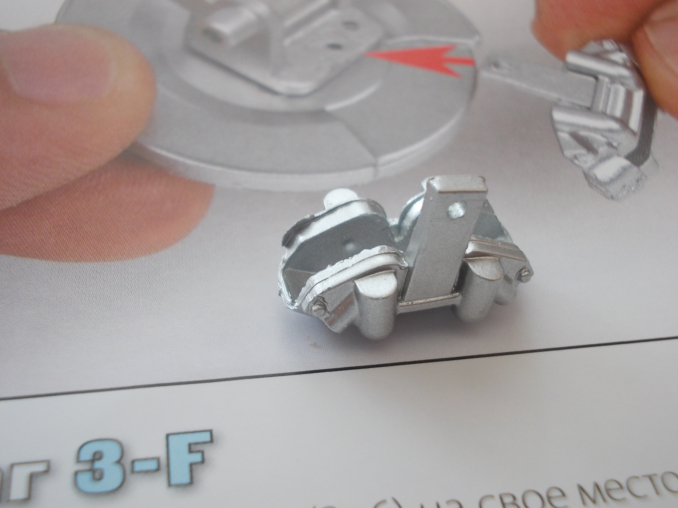 3. С колесом получилось очень легко: положил в металлическую миску, залил кипятком из чайника, подождать 2 минуты, вытащил кулинарными щипцами, протёр бумажными полотенцами и спокойно, не спеша, запихнул сначала половину диска, затем выправил края покрышки и окончательно собрал колесо. Не Lego, конечно, но сильных сложностей не испытал, силу особенно применять не пришлось.