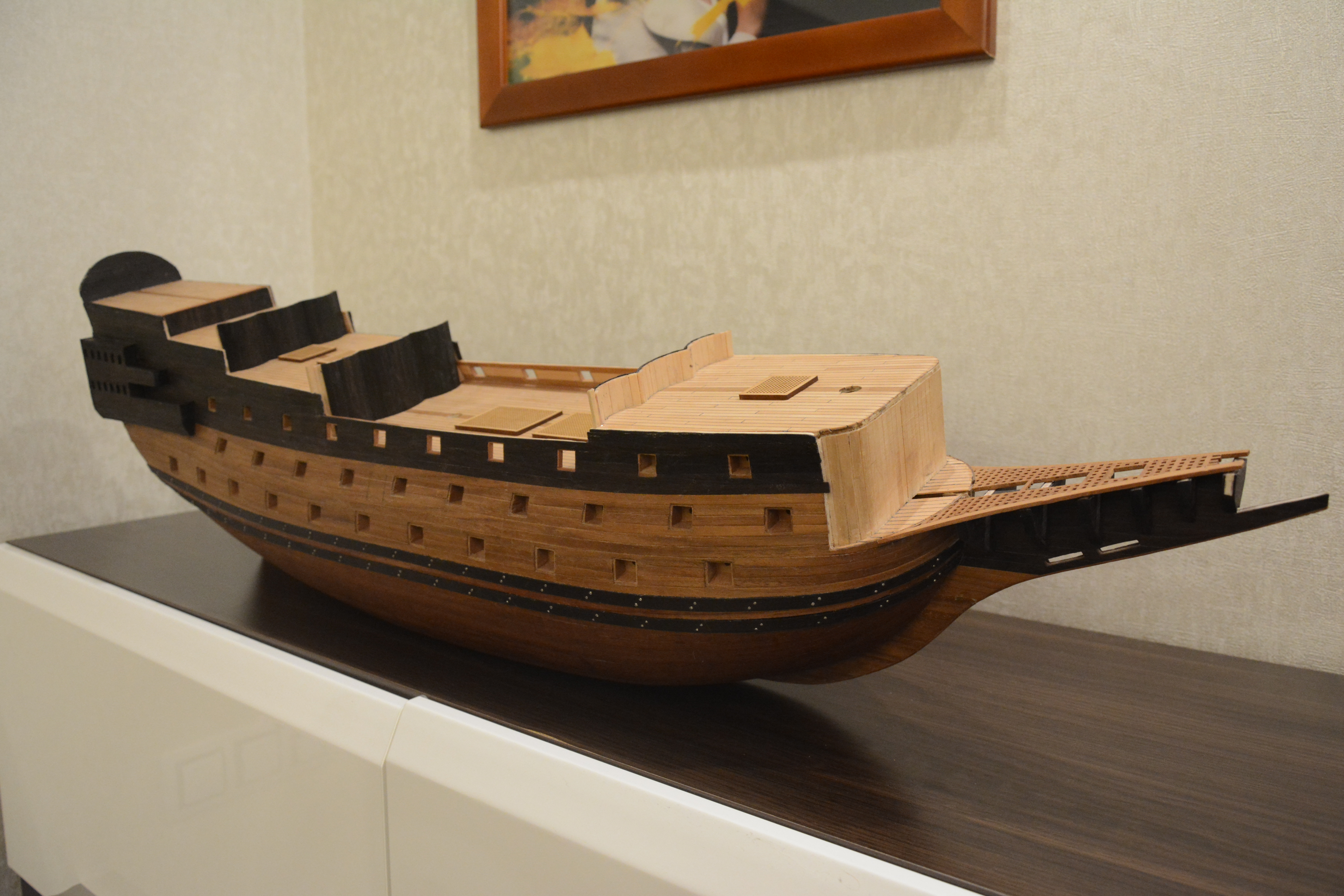 Буду делать чертёж и выпиливать по нормальному. Карронады (гаубицы) на верхней открытой палубе будут. Хочется эстетики, а не килограмм акрила, чтобы скрыть обожженные лазером уши. Морилкой было-бы хорошо структуру дерева (фанеры) раскрыть