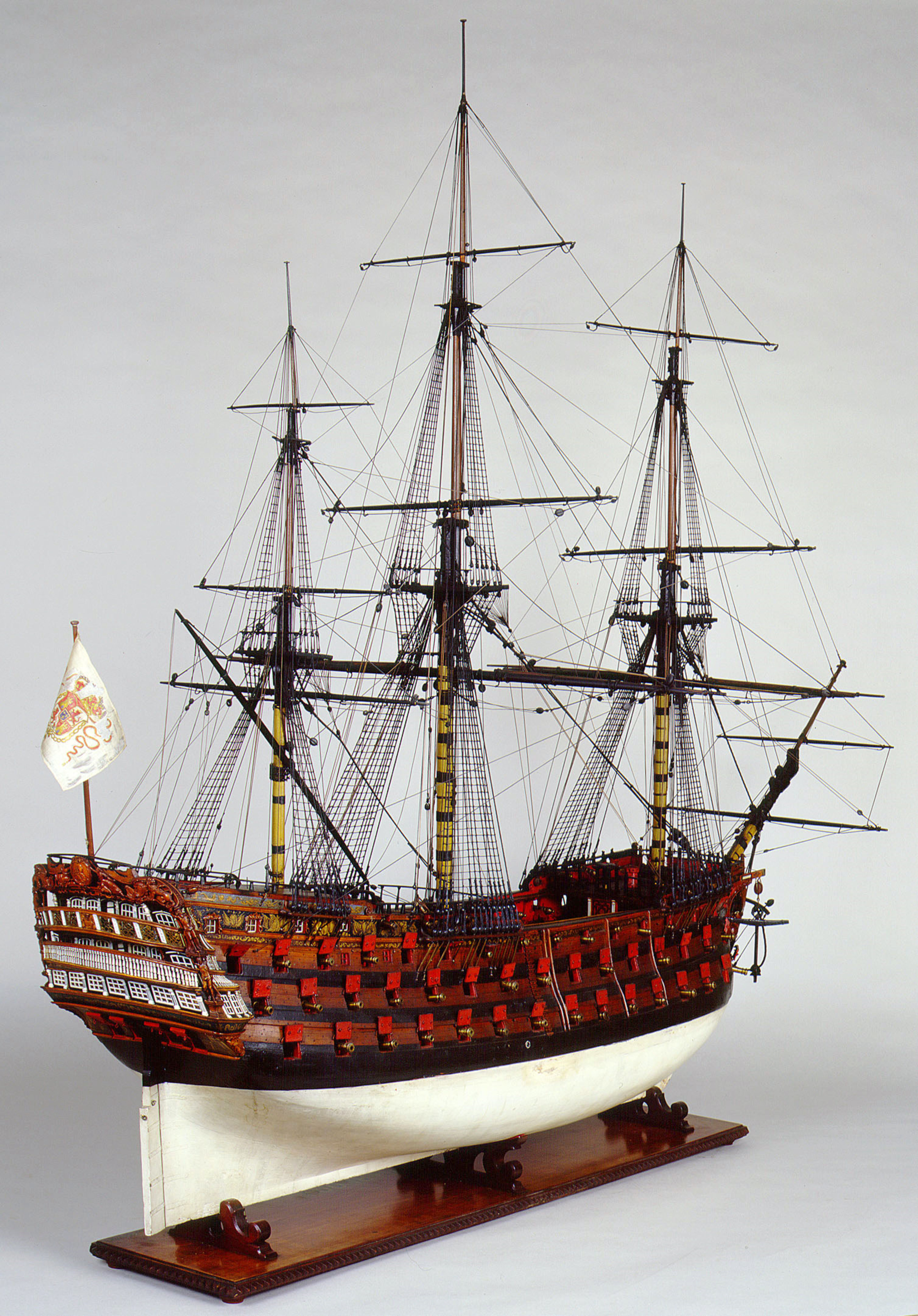 Для меня эта тема очень интересная. Дело в том, что корабли галеонной эпохи несли огромное количество вымпелов. "Повелитель морей"корабль построенный в Великобритании как раз на временной границе между эпохой галеонов и более поздних линейных кораблей. Вымпела украшают модель, но как их (вымпела) расположить и укрепить горизонтально на рангоуте и такелаже модели, чтобы они не висели безжизненными тряпочками от топа мачты и до верхней палубы модели? Ответа на этот вопрос я пока не нашел...