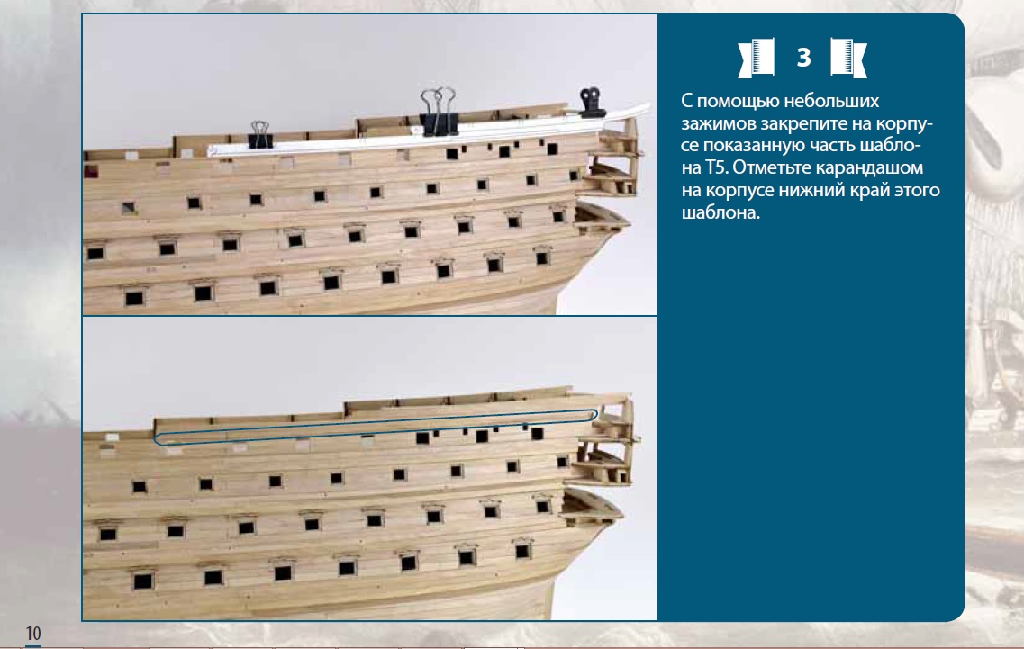 С 47 номером пришёл трафарет пушечных портов. Порадовало, что в коем-то веке в ДеА вспомнили, что порты эти от палубы к палубе были разных размеров, в зависимости от калибра пушки, и слегка прямоугольными, а не квадратными, как нам это частенько преподносилось в прошлых патворках. А уж наличие шпигатов, это вообще, что-то новое от ДеА!