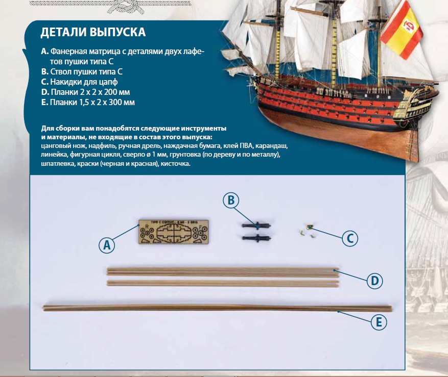 А вопрос мой такой: в каком номере нам покажут полупушки, которые будут устанавливаться в эти порты? Можно ли узнать будут ли они все разные, от палубы к палубе, то как это и было на "Тринидад"? Если это возможно опишите, пожалуйста, каких размеров будут эти полупушки (длина ствола, самое широкое место пушки, ширина ствола на срезе, длина шипа)?