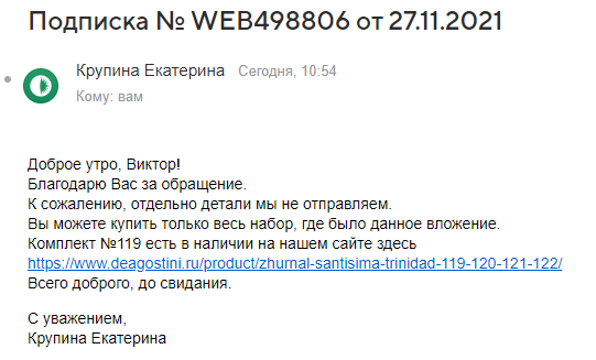 Ну и что следовало ожидать, если отсутствуют какие либо детали, докупайте журналы сами. Пока подписка была активной, мне присылали дополнительно, БЕСПЛАТНО, журналы с недостающими деталями. А теперь все. :(