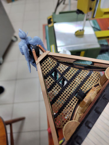 Закончил гальюн, остались всякие мелочи доделать. Фигура и бушприт поставлены для примерки.