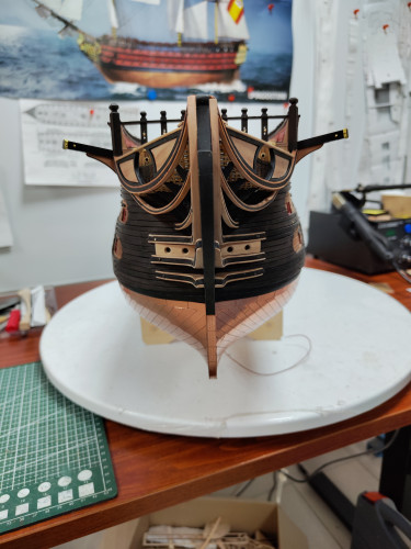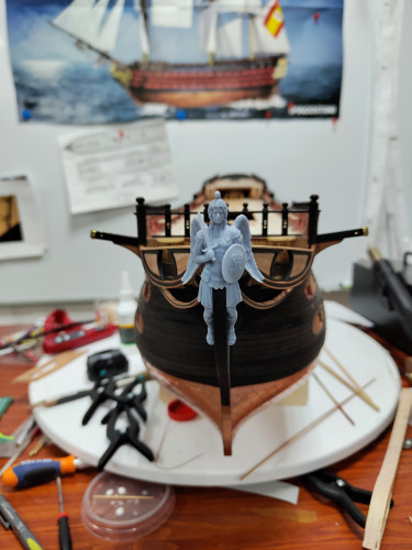 Добрый вечер - PSP - мне Ваша постройка корабля - Сантисима Тринидад - впечатляет красиво получается у Вас , по поводу носовой фигуры корабля можно фигуру - озолотить - покрасить акриловой краской - золотой - перед покраской покрыть фигуру грунтовкой , отгругтовать грунтовкой , что бы краска акриловая краска скрепилась на фигуре с мечем , с уважением Юра добра и здоровья Вам и успехов в моделировании кораблей