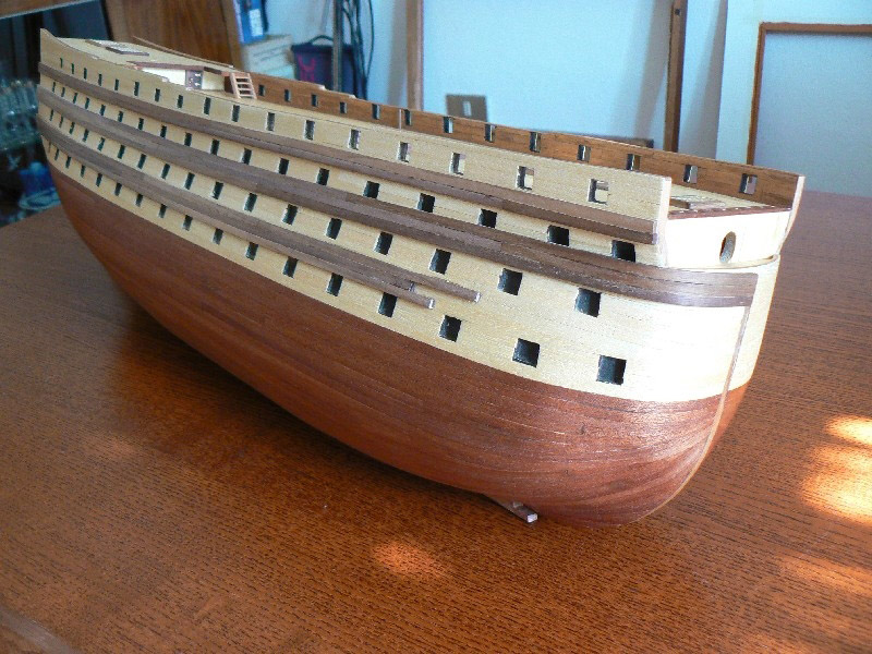 Рассчитать их очень просто. У Вас есть длина корпуса(силовой набор), который Вы будите обшивать. Длина рейки 300мм., ширина 5мм. Ниткой, верёвкой, или пр. Мерить длину и высоту, получите нужное кол-во реек. Порты прорезаются потом, в обшитом корпусе. Цвет реек лучше менять по бархоутам(кроме днища), но раньше, чем придут журналы, Вам ни кто ничего не скажет и не напишет, так было в предыдущих патворках. Лучше найти иностранную сборку, которая была раньше(если была), там смотреть. На фото, что нашёл быстро, посчитать не сложно.Александр Николаевич Борисов писал(а): ↑25 авг 2022, 11:24 Если все таки и заморочиться с морилкой реек( если что закрасить всегда можно), то как их рассчитать?