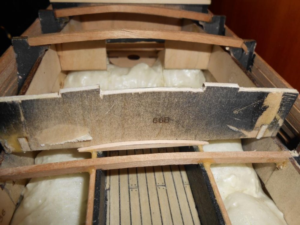 И ещё раз говорю нижнию палубу не видно будет! Пушки видно будет, люк световой, а настил почти нет, не трать время на переделку, его ещё много понабится. Я одни порты соберал и выезал с нового года, сейчас дальше начал обшивку клеить, думаю к лету только к покраске корпуса подойду.