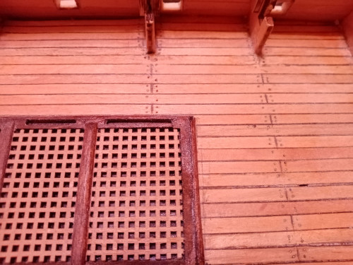 На фото имитация нижней палубы. Берёза, карандаш и раскладка и нагели, ничем не покрыта. Конечно фото не айс, но другого нет.
