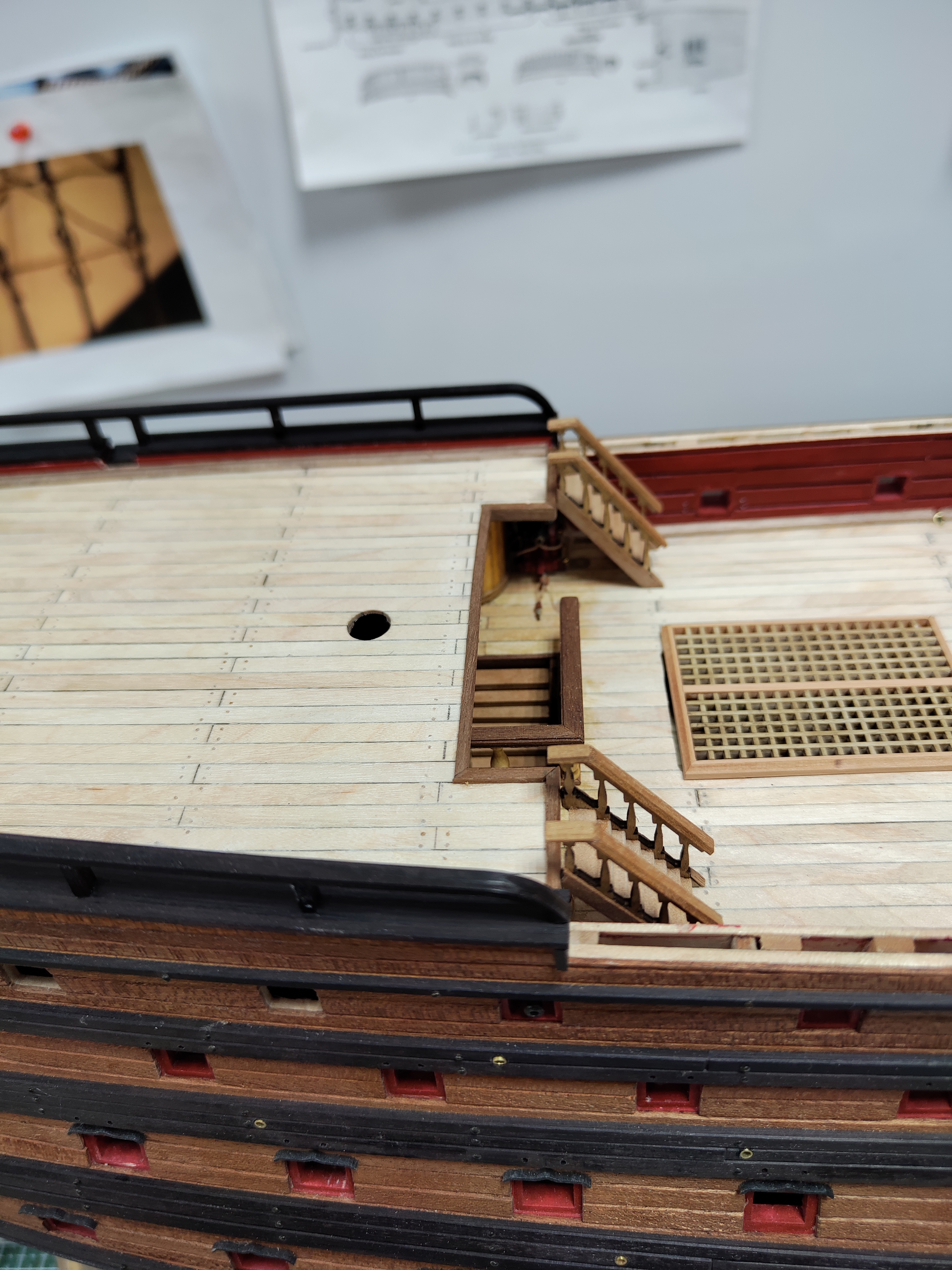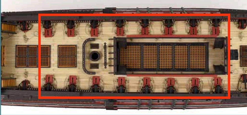 - Я вот тоже решил "деашные" решётки переделать, но обвязку у решёток, если так можно сказать, решил делать из прямоугольных реек. Та форма, которую выбрали Вы, она откуда? И прикреплены ли решётки уже к палубе квартердека? Вопрос этот возник потому как обратил внимание на небольшие щели между решётками и палубой.
