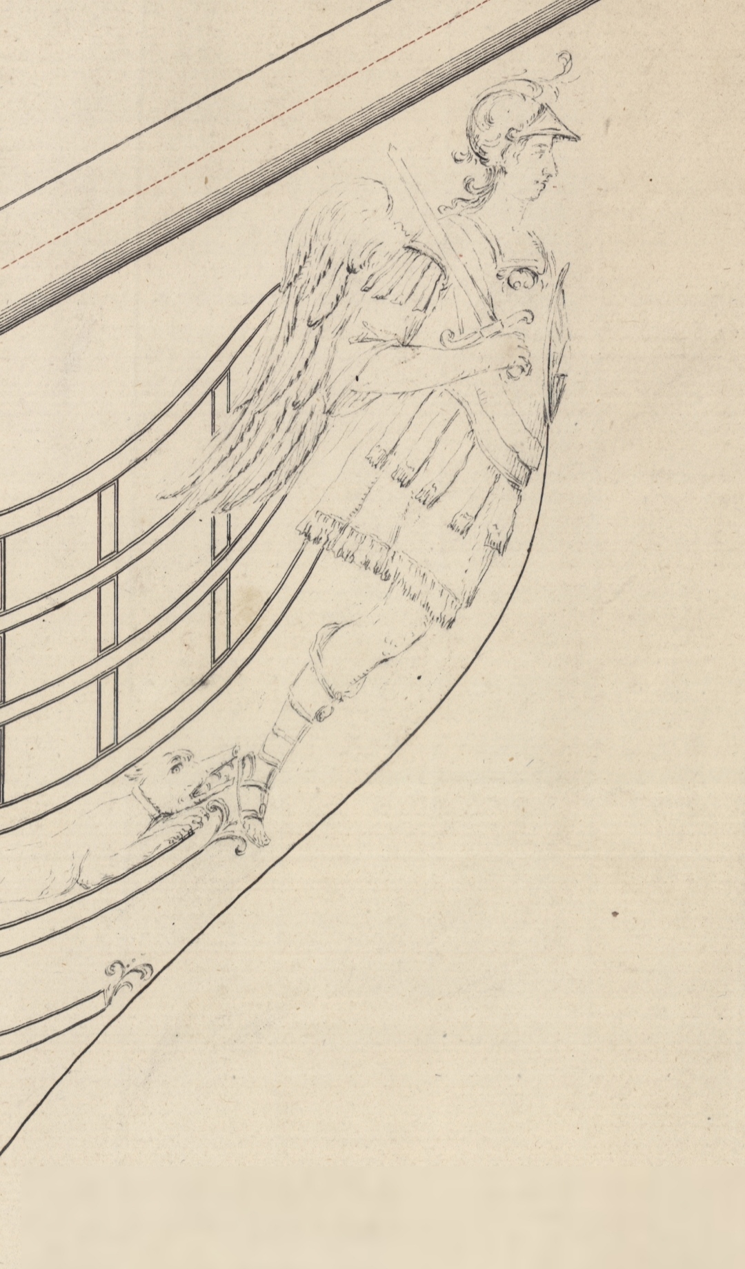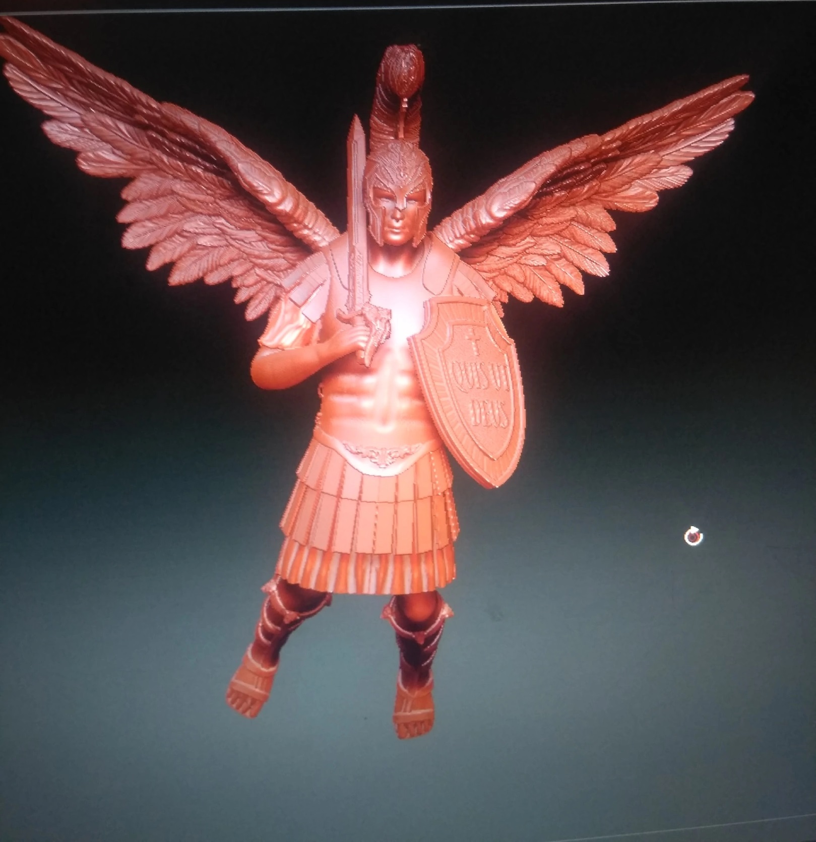 Насчёт щита и эфеса согласен, насчёт крыльев, да, на корабле они были опущены, хотя его часто изображают именно с поднятыми крыльями (специально загуглил). Одежда у него явно древнеримская, шлем, да, гребень великоват и нащёчники лишние, кроме того, ноги не должны быть расставлены.