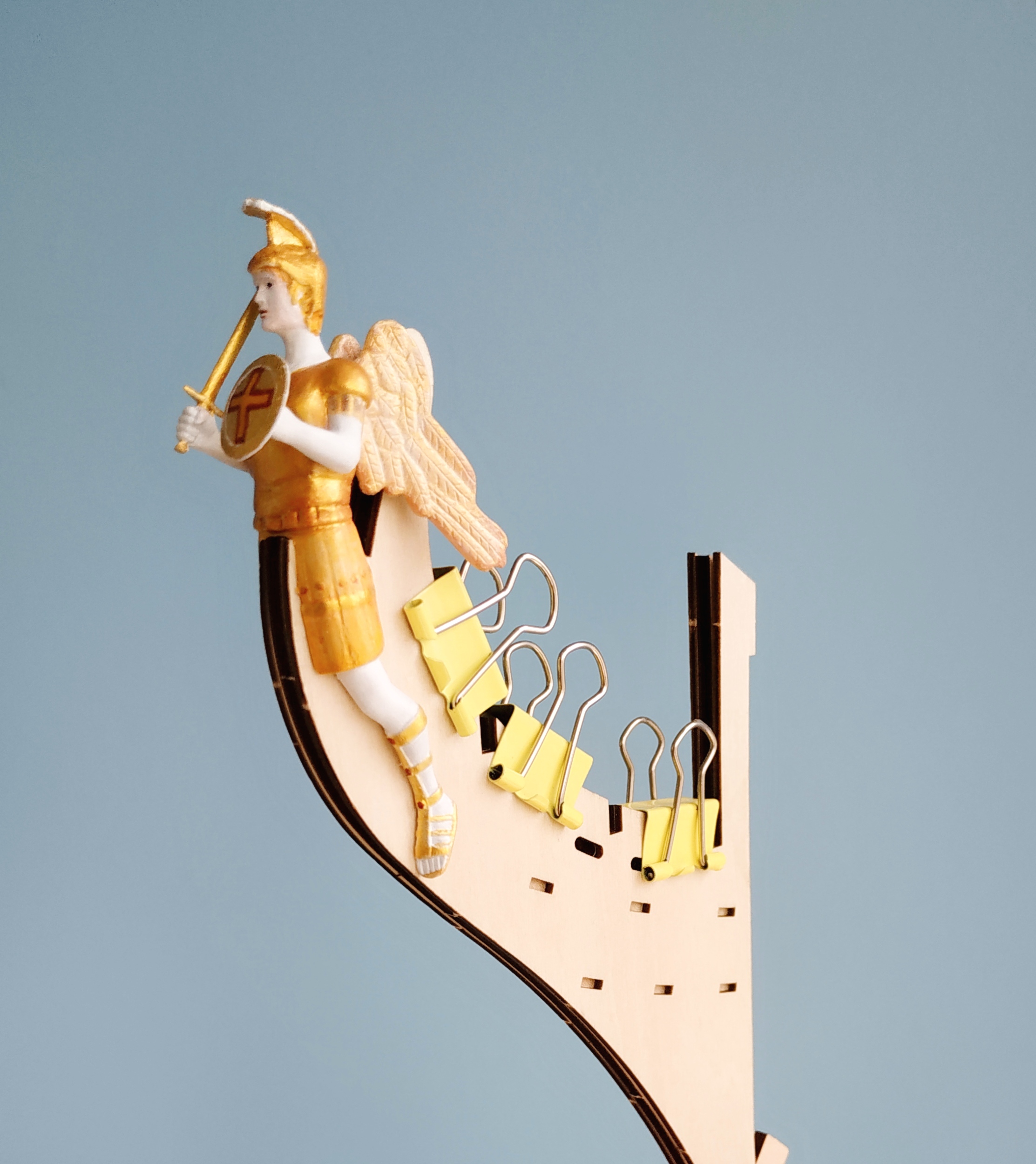 Вы верно подметили, что окраска оживила фигуру. Именно в этом и была моя идея, когда я решил таким образом покрасить её, уйти от "скульптурности" в образе и сделать фигуру, которая была бы похожа на живого Архангела Михаила.