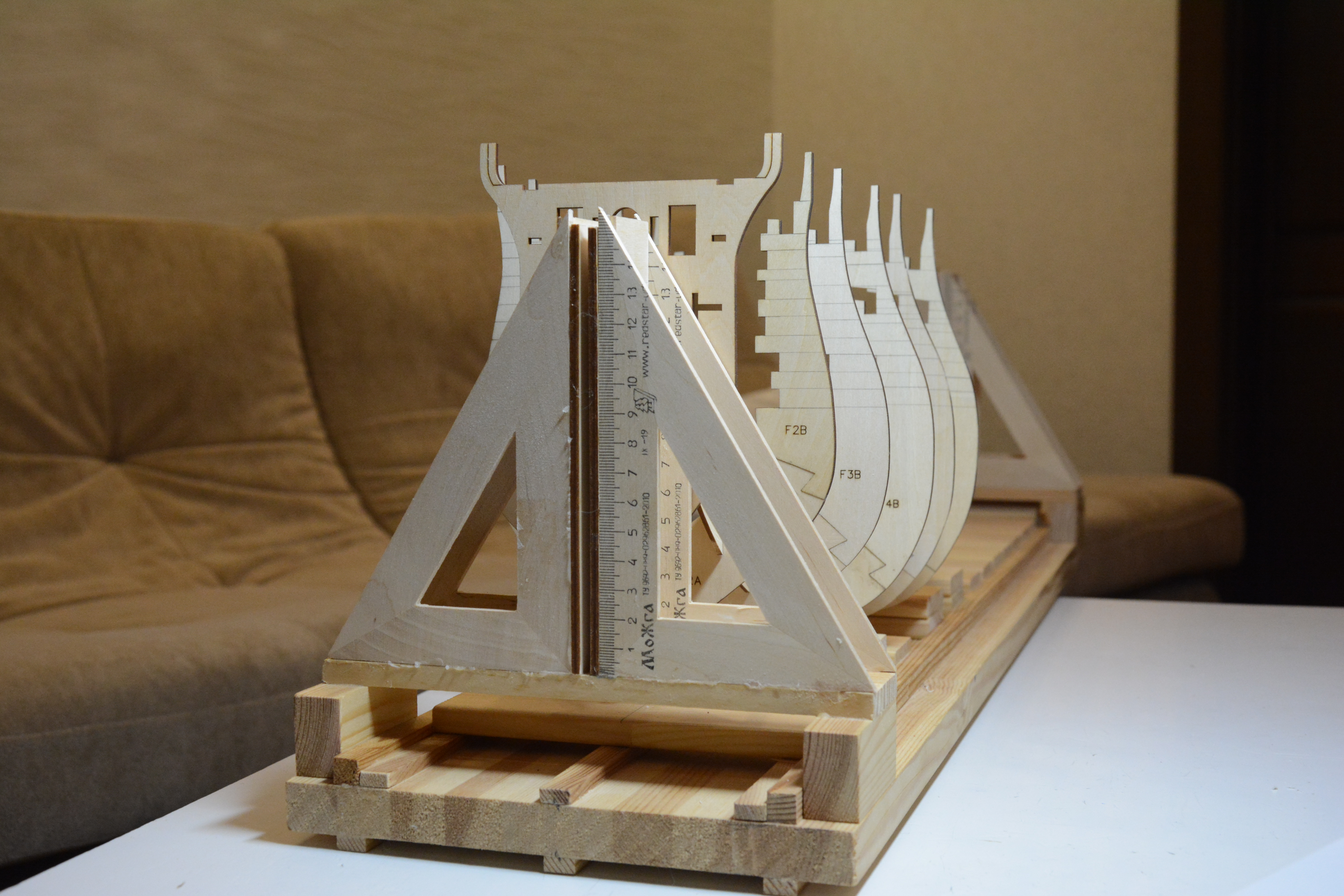 Мы с папой сделали стапель из того что было дома. Доска, фанера и линейки.