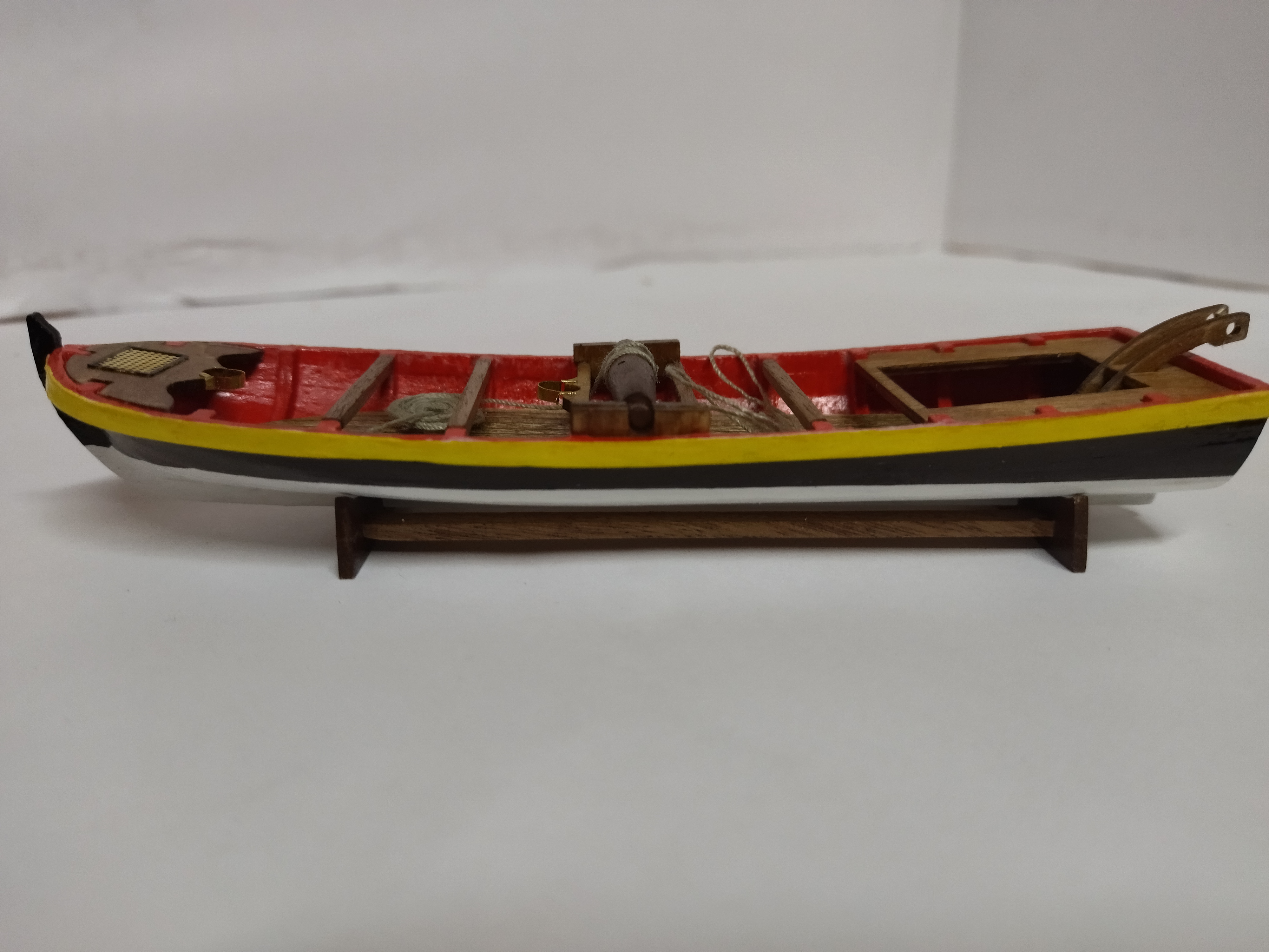 Судя по фото шлюпки - придется накладывать второй слой обшивки, но сначала надо будет первый шкуркой слегка пройти. Малковку шпангоутов в носовой части необходимо было сделать лучше. Я снял обшивку, исправил и заново сделал.