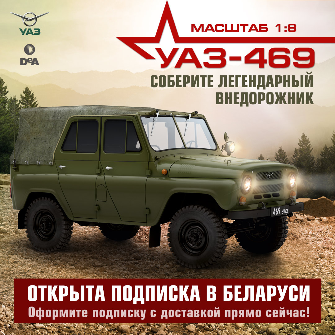 Теперь коллекции «УАЗ-469. Соберите легендарный внедорожник» можно заказать в Беларусь через официальный сервис подписки с доставкой из России!
