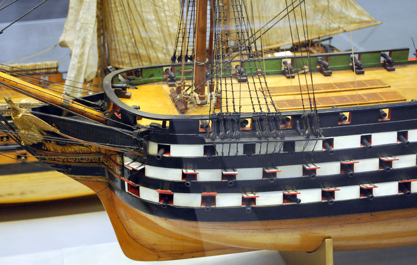 Что-то тут не так, пушка под трапом. Не выстрелишь, может трап надо было вдоль борта поставить? Или похоже порты прорезаны не правильно, его не должно быть под трапом. Ошибка разработчика модели или Ваша?