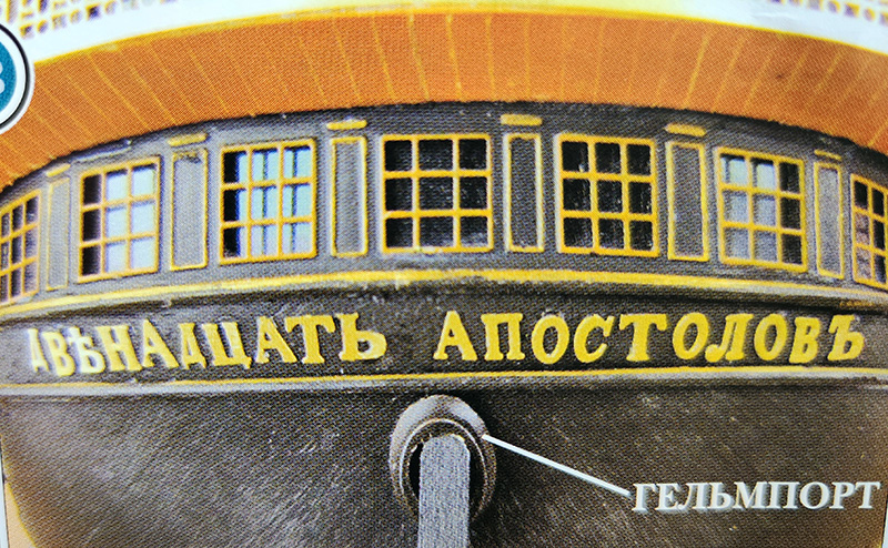 На чертеже разреза можно найти положение иллюминаторов относительно портов, 12 штук на борт. Общее расположение хорошо видно на моделях Алешина и Фомина.