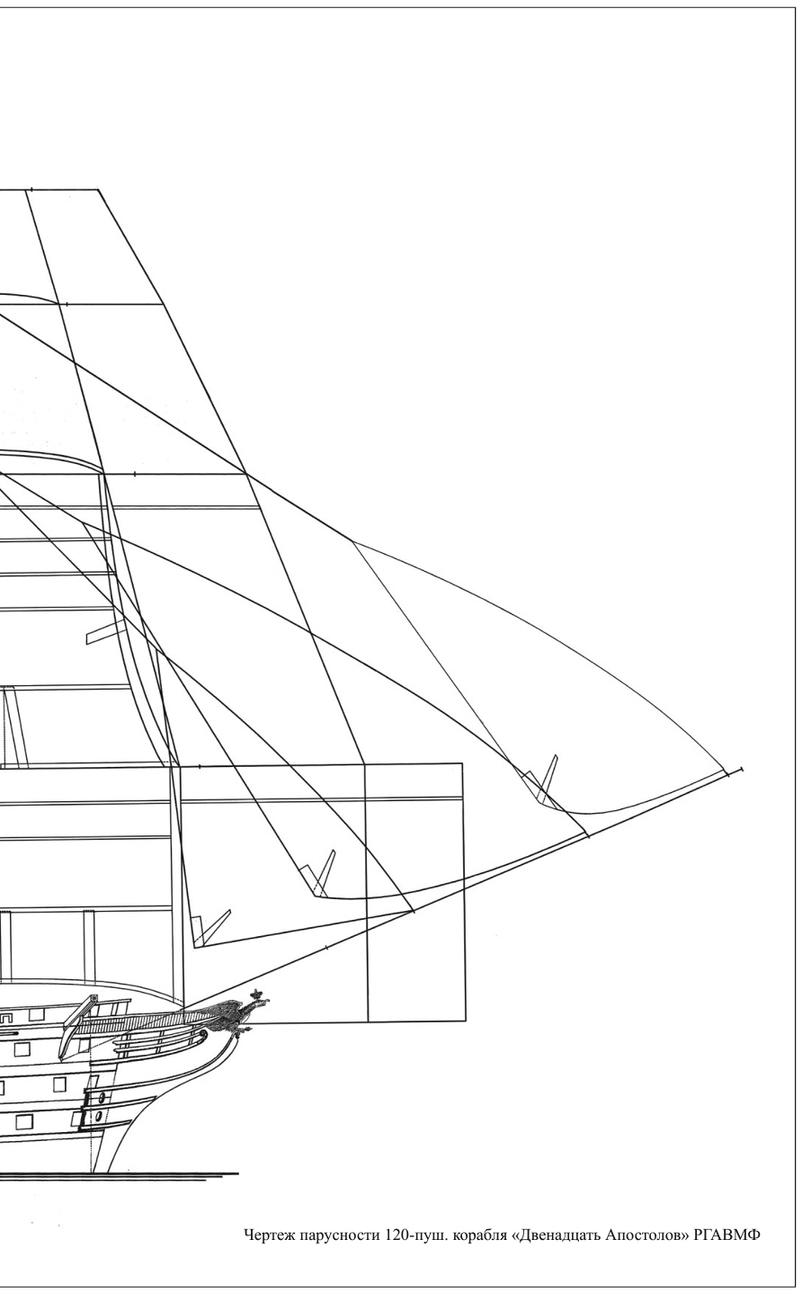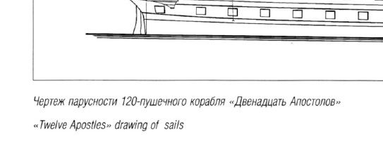 Третий четртеж выполнен Шлычковым и публиковался в "Моделист-конструктор". По нему построено немало моделей "12 Апостолов". Имеет наименьшее совпадение - все мачты короче и чуть сдвинуты в корму, марсы и салинги находятся ниже. Так что будем ориентироваться на чертеж в книге Гребенщиковой по большей части совпадающий с историческим чертежом систершипа.