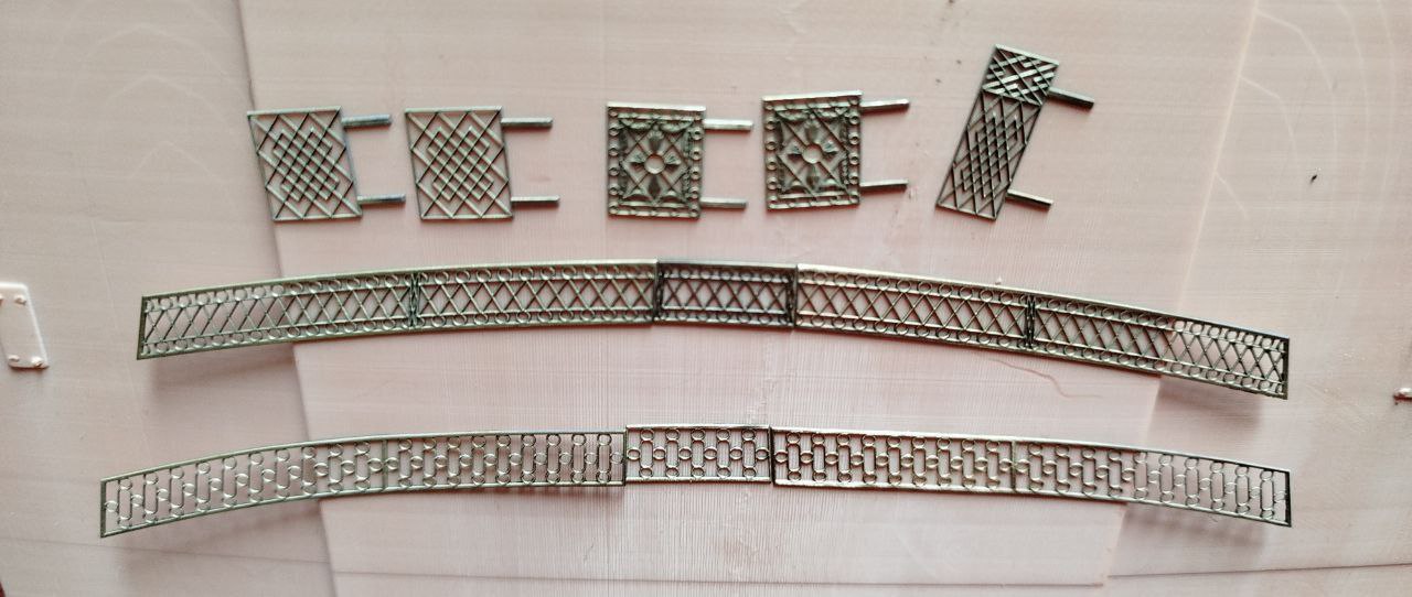Это балконы и калитки в 100 масштабе делал тот же человек, что и на модель Дмитрия Шевелева. Если интересно дам контакты. Он сейчас делает декор на корму и буквы. Пока в живую не видел.