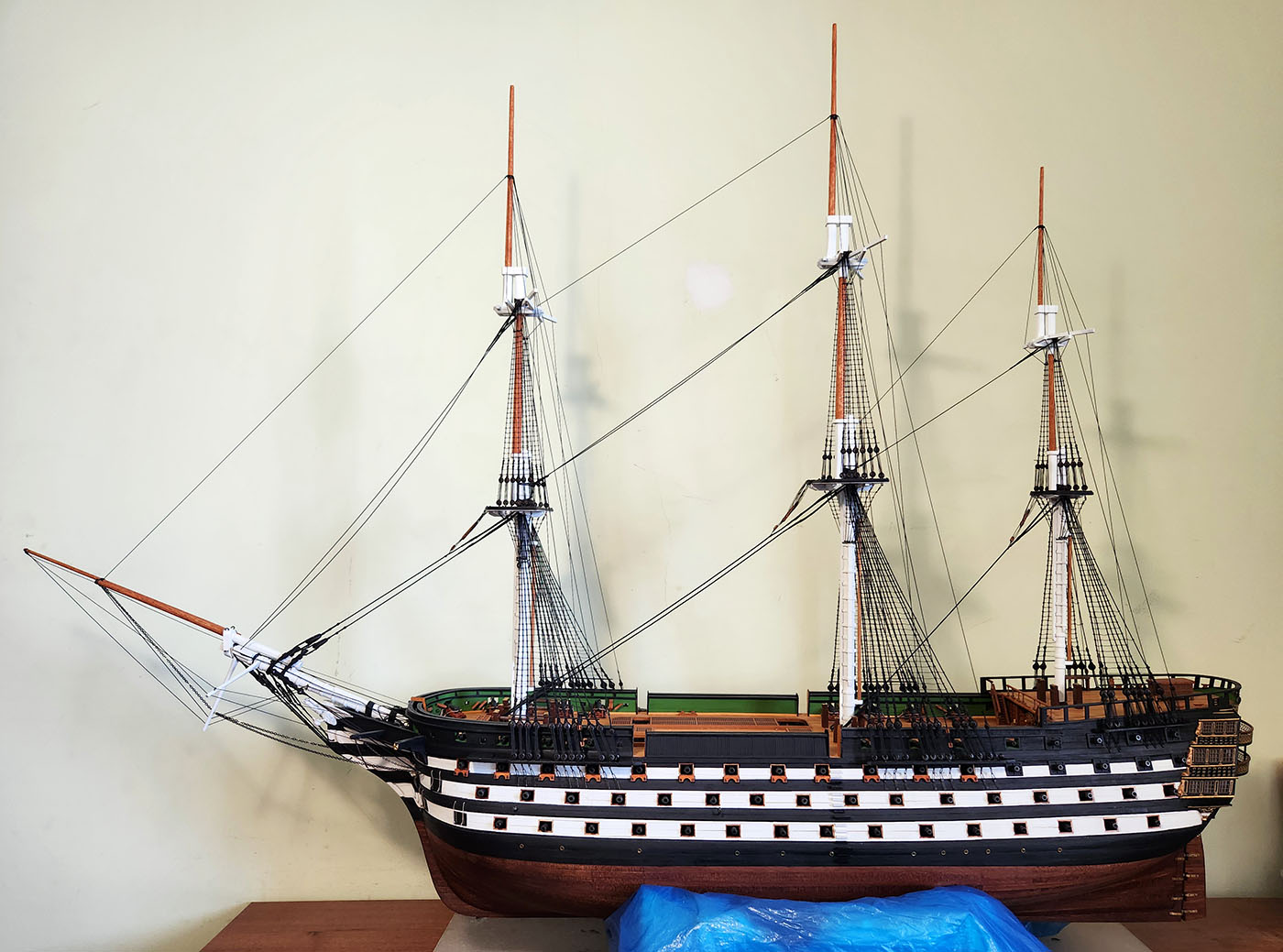 Частично поставлен такелаж брам-стеньг. В инструкцию в журнале почти не смотрю, Петерссона смотрю для справки, в основном Посьета и как это сделано на моделях в ЦВММ и у топовых авторов. Уже в модели что-то прорисовывается.
