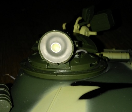 Если приглядеться к Вашей ИК Камере - то можно заметить вокруг нее - ИК светодиоды подсветки. Коие включаются, или сразу с камерой, или при каком-то минимальном внешнем освещении. Первое - скорее всего. Размеры этой камеры - возможно - такие , что она сможет влезть, если не в ИК прожектор на командирском люке, то в ИК прожектор рядом с пушкой.