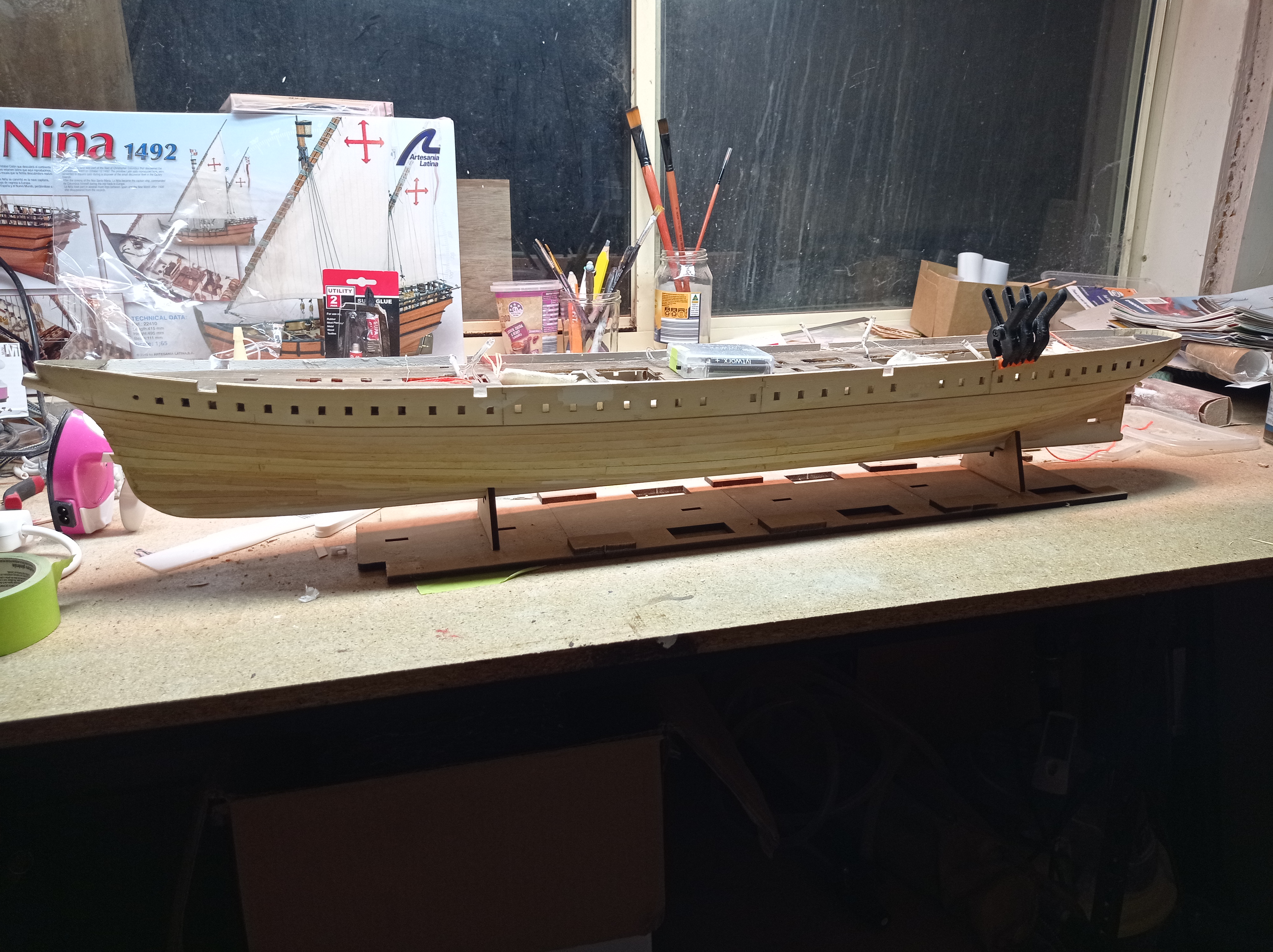 я риски карандашом делаю. только остановился сейчас с обшивкой после 5 ряда с 2 сторон. киот и форштевень подрихтовать надо