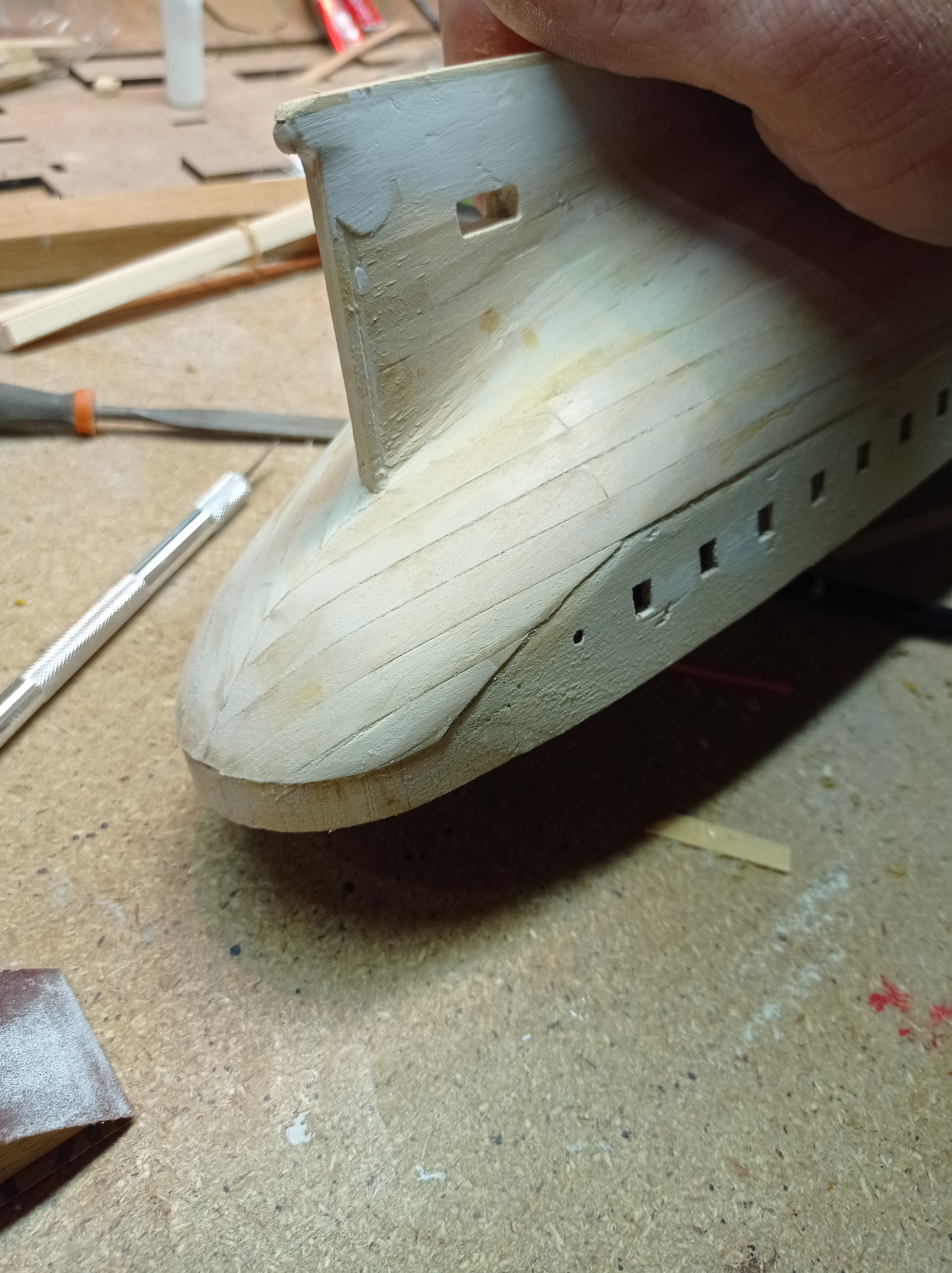 Корма получилась не идеально, придётся шпаклевать и дорабатывать напильником