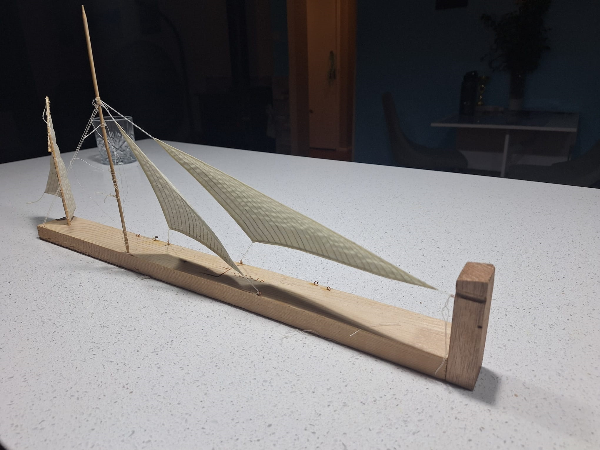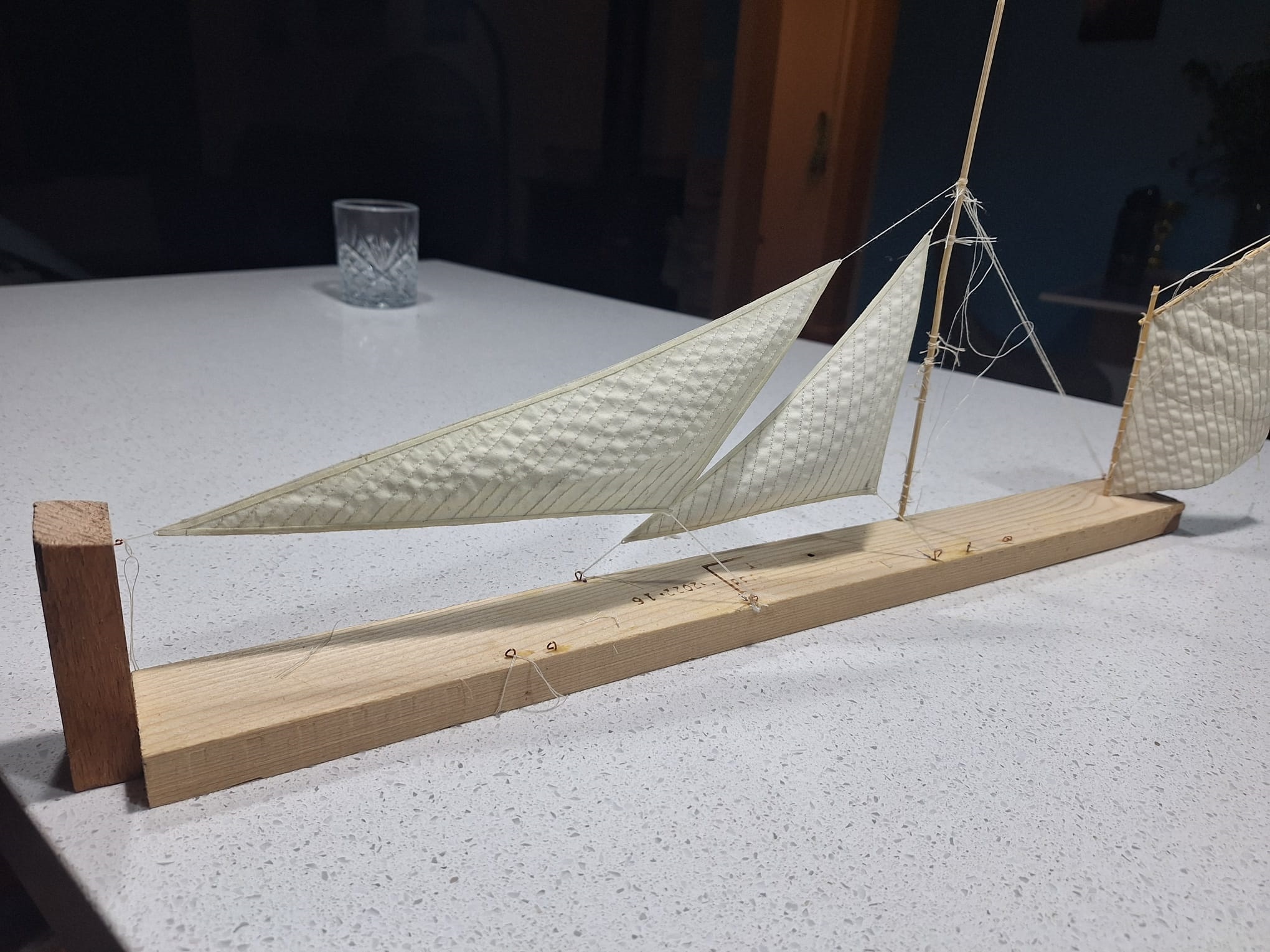 Да, рей подпалил. Пришлось всё паять прямо на рее, паяльник не прогревал, использовал горелку. В следующий раз буду стеклотканью обматывать, чтобы защитить дерево.
