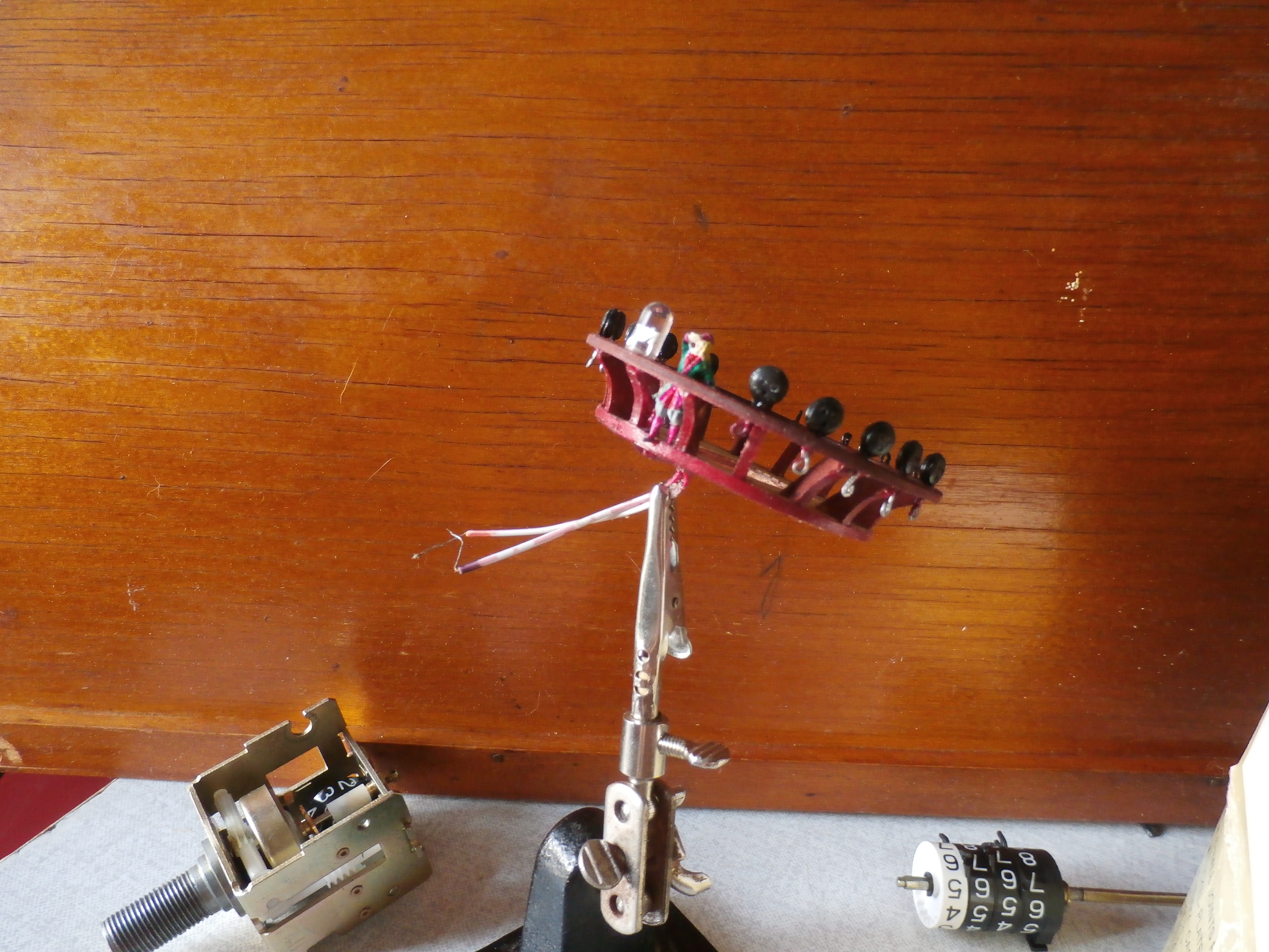Вот как я решил у себя вашу проблему. У меня на "Повелителе" на фоке-марсе матрос- впередсмотрящий.Фигурка матроса от патворка ДеА. На планшире марса корабельный фонарь, но сколько бы я не сооружал фонарь "под старину" получалось очень громоздко, топорно, грубо! Светодиод обычных размеров, фишка в нем - он красноватого цвета, мерцающий и дает очень слабый для светодиодов свет. Я и остановился на последнем варианте: Оставил светодиод без фонаря, думаю среди парусов, такелажа и рангоута корабля затеряется его - диода современный вид!