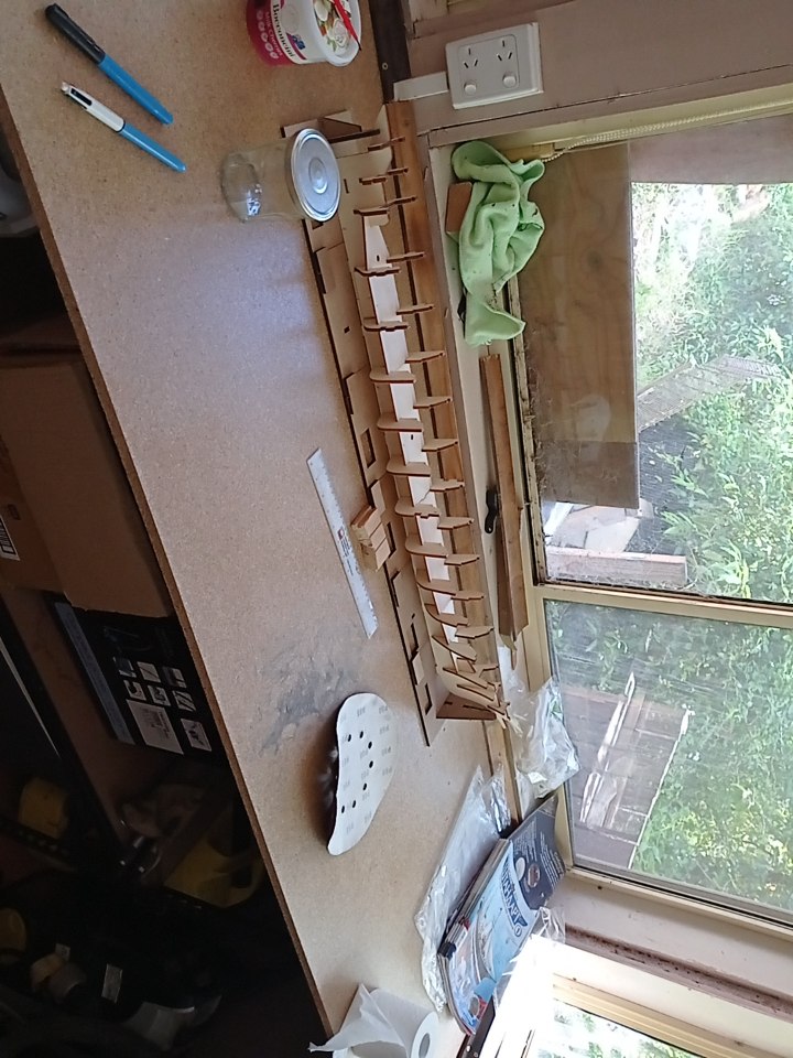 Кстати, обнаружил, что корабль уже сейчас начал покрываться пылью уже сейчас, так что ящик придётся делать ещё до окончания постройки модели...