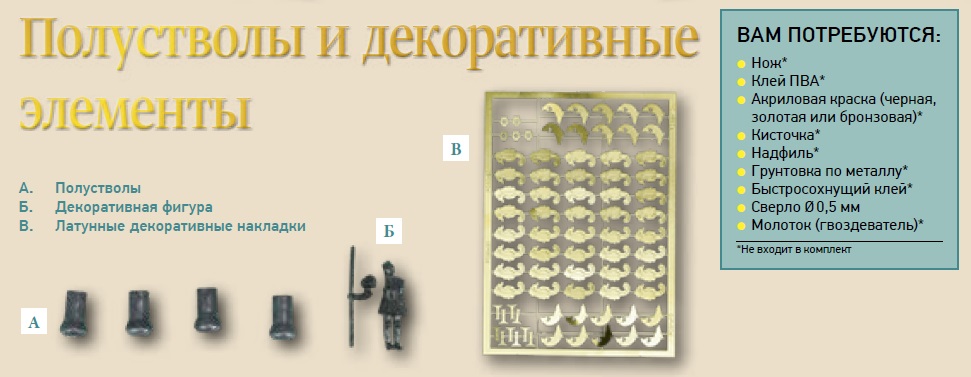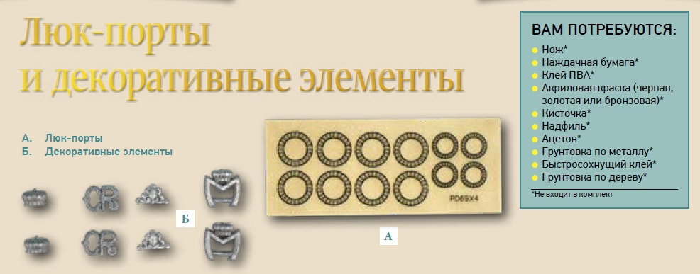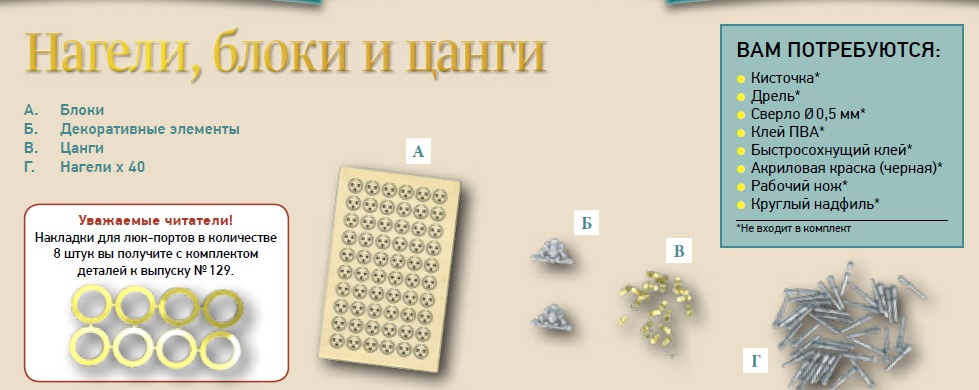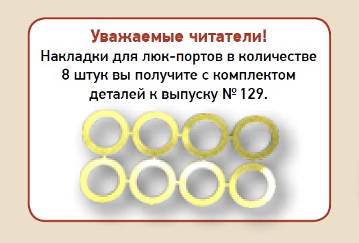 Сообщаем, что дополнительные делали (8 накладок на люк-порты), которые понадобились в процессе сборки, будут даны с выпуском №129. Напоминание мы ещё раз опубликуем в журнале №119.
