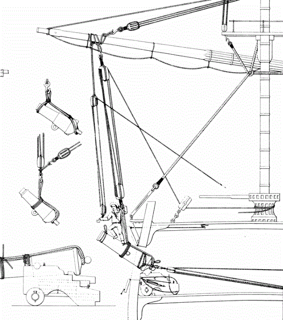 Благодарю Вас за ссылку и информацию по заданному вопросу. Если со шпилем все ясно, то вот по системе управления у меня все-таки есть неясности. Если пост управления находился в кормовой части мидльдека, где, как верно замечено, наличие пушек не мешает размещению системы блоков и талей управляющих румпелем, то... каким же образом обеспечен визуальный контроль для рулевого? Неужели вслепую, по голосовым командам и картушке компаса? Гложут меня смутные сомненья..... А может это у меня с соображалкой что-то не так? В любом случае, внимательно изучая общий чертеж размещения от Мантуя (к сожалению от DeA ничего подобного нет,увы) я так и не обнаружил следов размещения рулевого поста.
