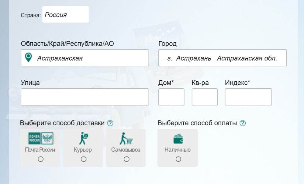 Проверил тоже в хроме. При пустых полях формы способы доставки - только почта.Forum Admin писал(а): ↑30 янв 2018, 13:29
