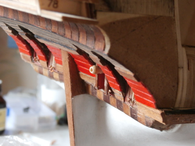 Но всё это лирика. Я же просто перешел к сооружению портов гон-дека на правом борту своей модели. Мне наверное скажут, что мол сложно и хлопотно в изготовлении. Возможно! Но мне нравится!