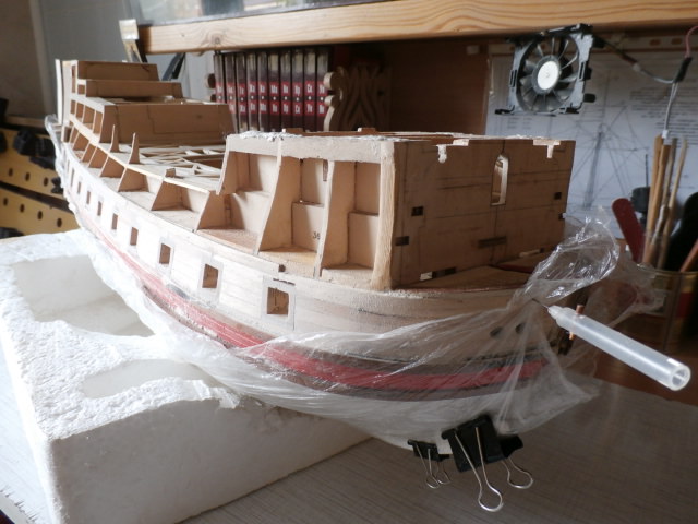 Я сначала не придал значения вашему способу черновой обшивки судна. Привык делать по классике. Теперь рассматривая ваши фото, понимаю, что в этом, что то есть. С точным прорезанием портов всегда были проблемы, то там вильнуло, то здесь убежало, делаешь кучу шаблонов, что то переделываешь, а подгонка черновой под под готовый "колодец" порта мне очень понравилась, если ДЭА не соблазнит чем нибудь типа "Солей Роял", то следующей моделью будет как раз "Нептун" думаю опробовать вашу технологию.